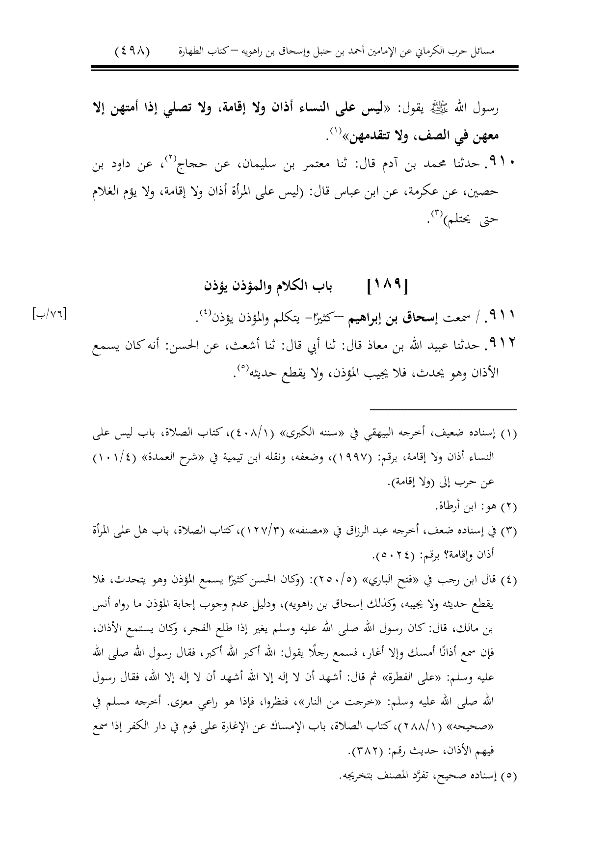 911 - / سمعت إسحاق بن إبراهيم -كثيرًا- يتكلم والمؤذن يؤذن.