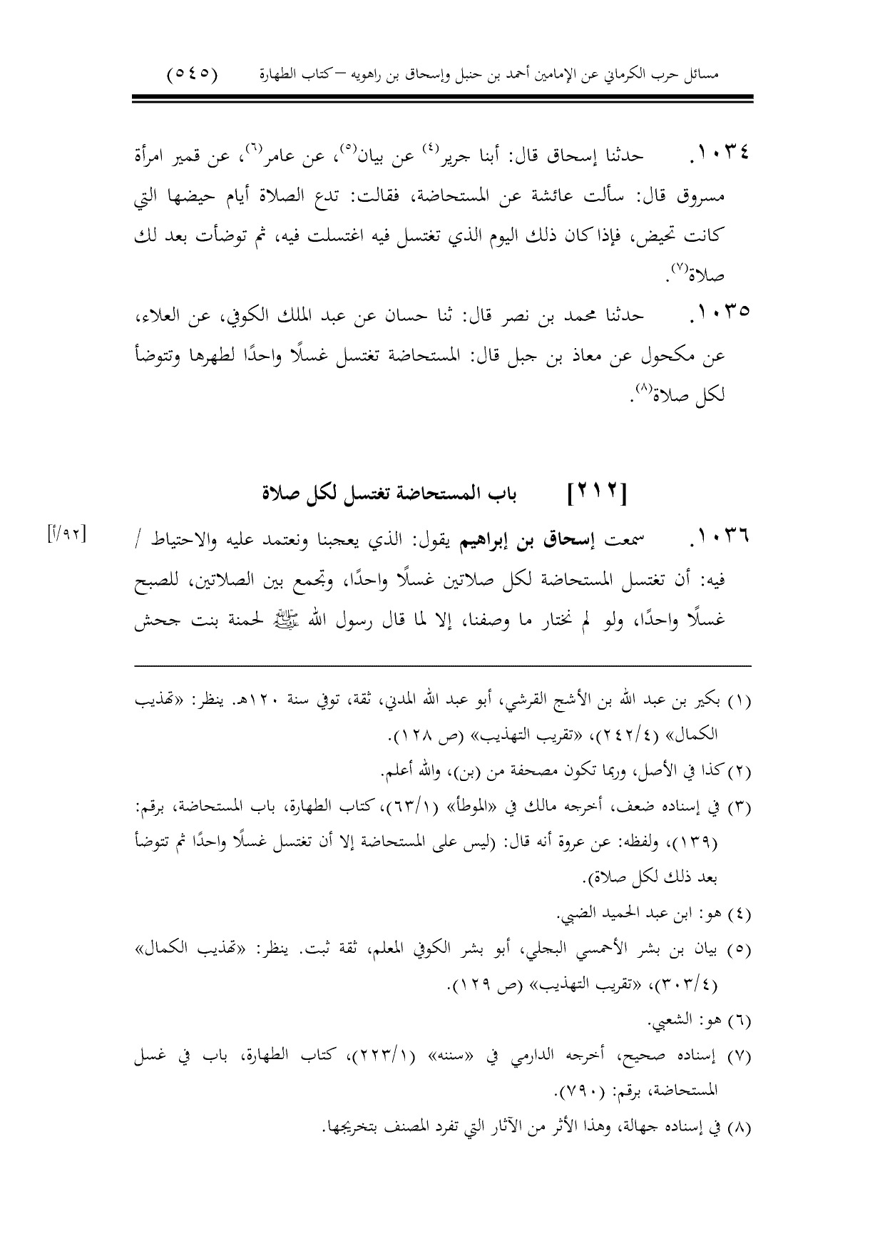 كتاب مسائل حرب الكرماني كتاب الطهارة - ت عامر بهجت