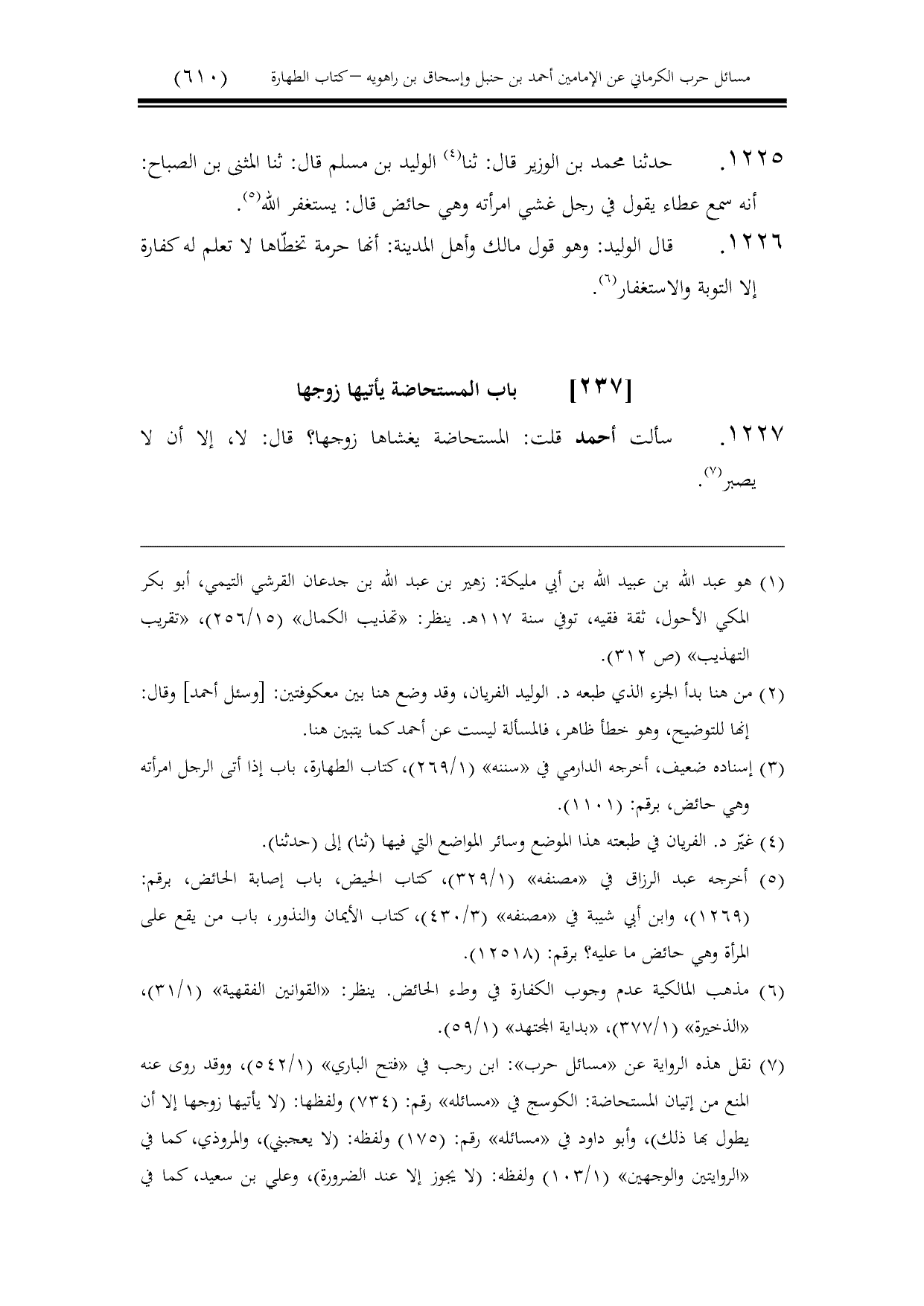كتاب مسائل حرب الكرماني كتاب الطهارة - ت عامر بهجت