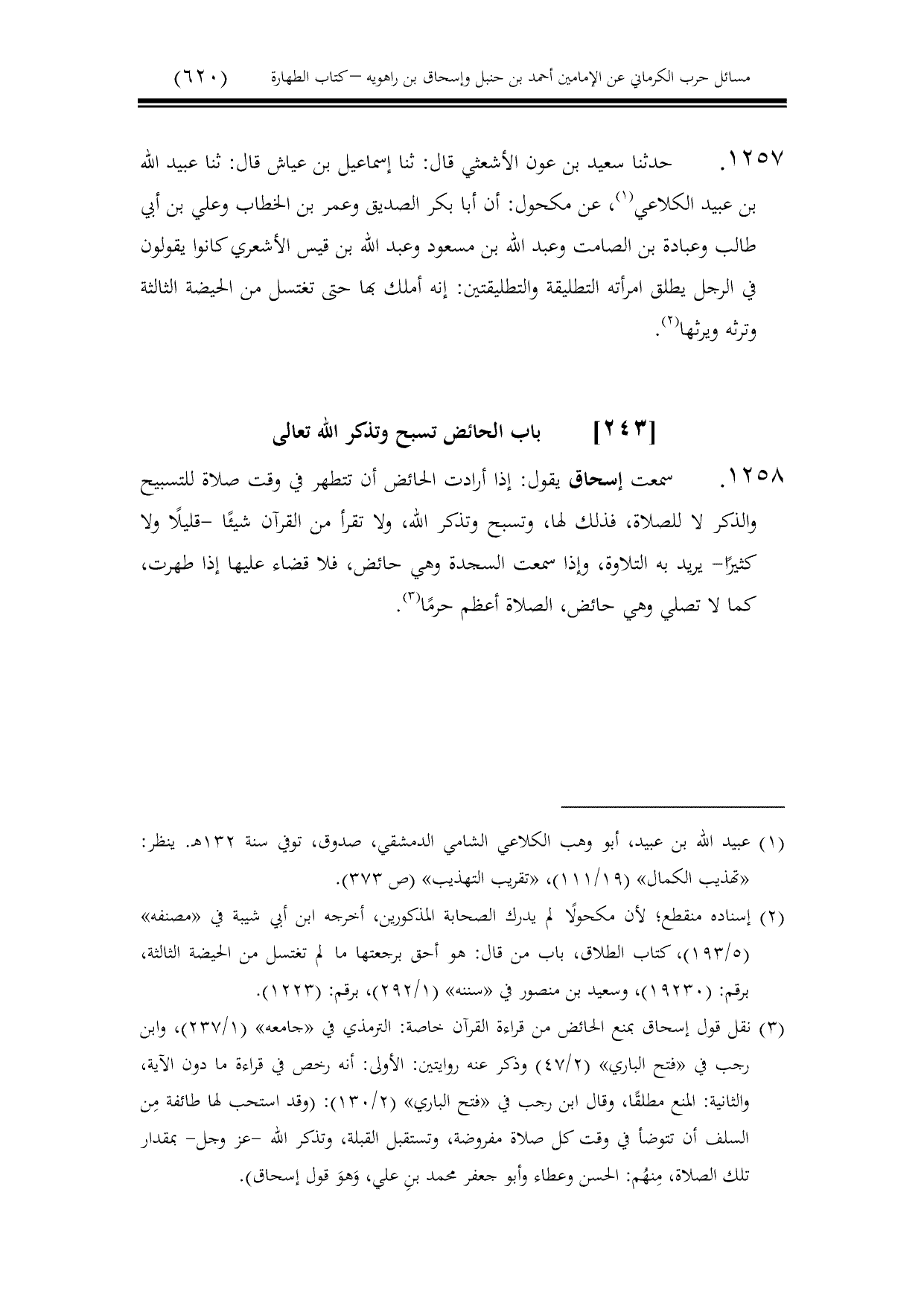 كتاب مسائل حرب الكرماني كتاب الطهارة - ت عامر بهجت