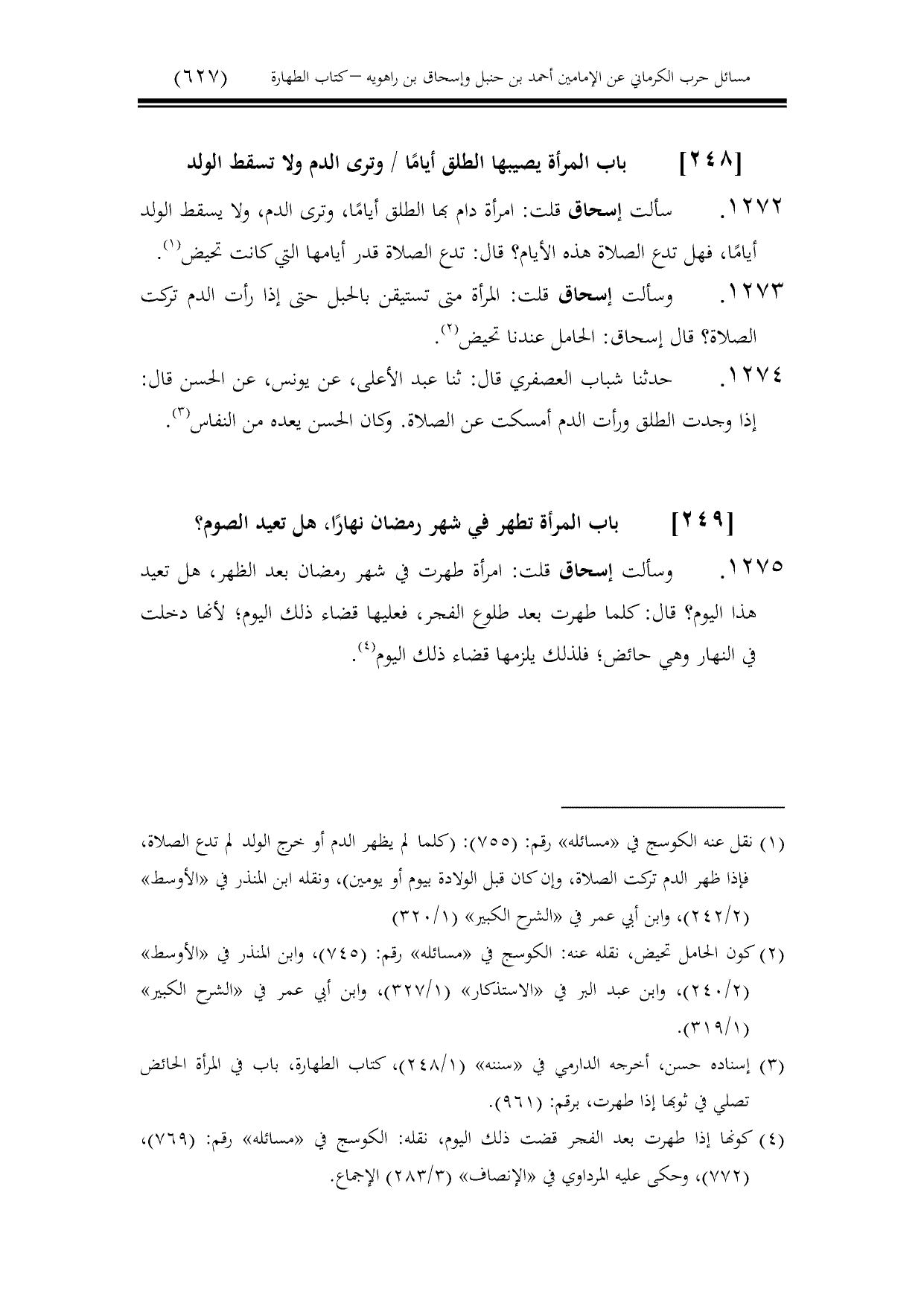 كتاب مسائل حرب الكرماني كتاب الطهارة - ت عامر بهجت