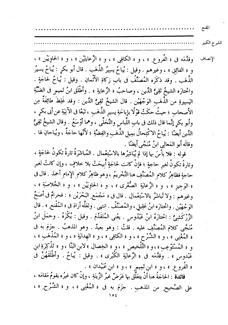 وقدَّمَه في «الفُروعِ»، و «الكافِي»، و «الرعايتَين»، و «الحاويَين»، و «الفائِقِ»، وغيرهم. وقيل: يُباحُ يسِيرُ الذَّهَب. قال أبو بكرٍ: يُباحُ يسيرُ الذَّهَب. وقد ذكَرَه المُصَنِّفُ في بابِ زكاةِ الأثْمانِ. وقيل: يُباح لحاجَةٍ. واخْتارَه الشيخُ تَقِي الدِّين، وصاحبُ «الرِّعايةِ». وأطْلَقَ ابنُ تَميم في الضبةِ اليَسِيرةِ من الذَّهَبِ الوَجْهَين. قال الشيخُ تَقِي الدين: وقد غَلِطَ طائِفَة مِن الأصحابِ؛ حيثُ حكَتْ قوْلًا بإباحَةِ يسيرِ الذَهَبِ، تَبَعًا في الآنِيَةِ عن أبي بكرٍ، وأبو بكرٍ إنَّما قال ذلك في بابِ اللباس والتَّحَلِّي، وهما أوْسَعُ. وقال الشيخُ تَقيُّ الدِّين أيضًا: يُباحُ الاكْتِحالُ بمِيلِ الذَّهَبِ والفِضَّةِ؛ لأنَّها حاجَةٌ، ويُباحانِ لها. وقاله أبو المَعالِي ابنُ مُنَجَّى أيضًا.