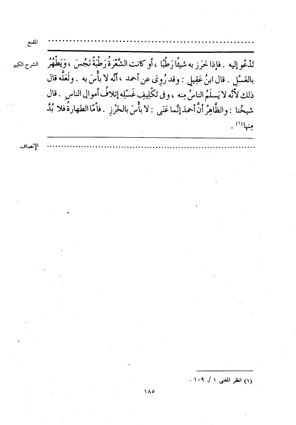 تَدْعُو إليه. فإذا خَرَز به شيئًا رَطْبًا، أو كانت الشَّعْرَةُ رَطْبَةً نَجُسَ، وَيَطْهُرُ بالغَسْلِ. قال ابنُ عَقِيلٍ: وقد رُوِيَ عن أحمد، أنَّه لا بأْسَ به. ولَعَلَّه قال ذلك لأنَّه لا يَسلَمُ الناسُ مِنه، وفي تَكْلِيفِ غَسْلِه إتلافُ أموالِ الناسِ. قال شيخُنا: والظَّاهِرُ أنَّ أحمدَ إنَّما عَنَى: لا بأْسَ بالخَرْزِ. فأمّا الطهارةُ فلا بُدَّ مِنها (¬1).