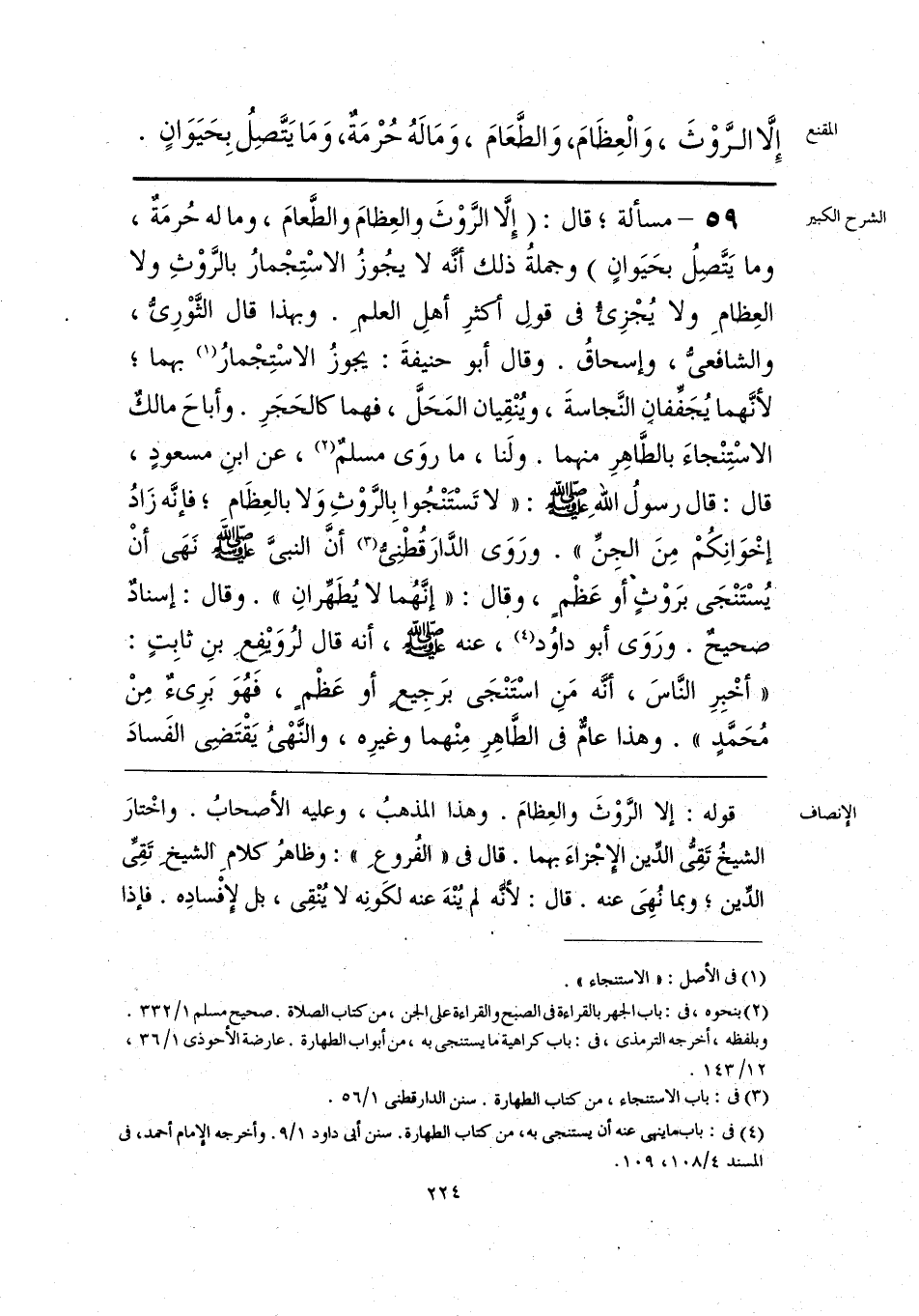 إلا الرَّوْثَ، وَالْعِظَامَ، وَالطَّعَامَ، وَمَالهُ حُرْمَةٌ، وَمَا يَتَّصِلُ بِحَيَوَانٍ.