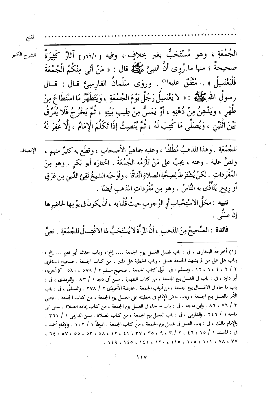 فائدة: الصَّحيحُ مِنَ المذهبِ، أنَّ المرْأةَ لا يُسْتَحَبُّ لها الاغْتِسالُ للجُمُعَةِ. نصَّ