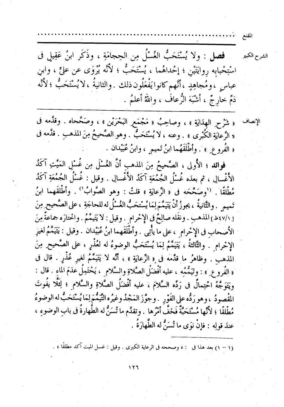 «شَرْحِ الهِدَايةِ»، وصاحِبُ «مَجْمَع البَحْرَين»، وصَحَّحاه. وقدَّمه في «الرعاية الكُبْرى». وعنه، لا يُسْتَحَبُّ. وهو الصَّحيحُ مِنَ المذهبِ. قدَّمه في «الفُروعِ». وأطْلَقَهُما ابنُ تَميم، وابنُ عُبَيدان.