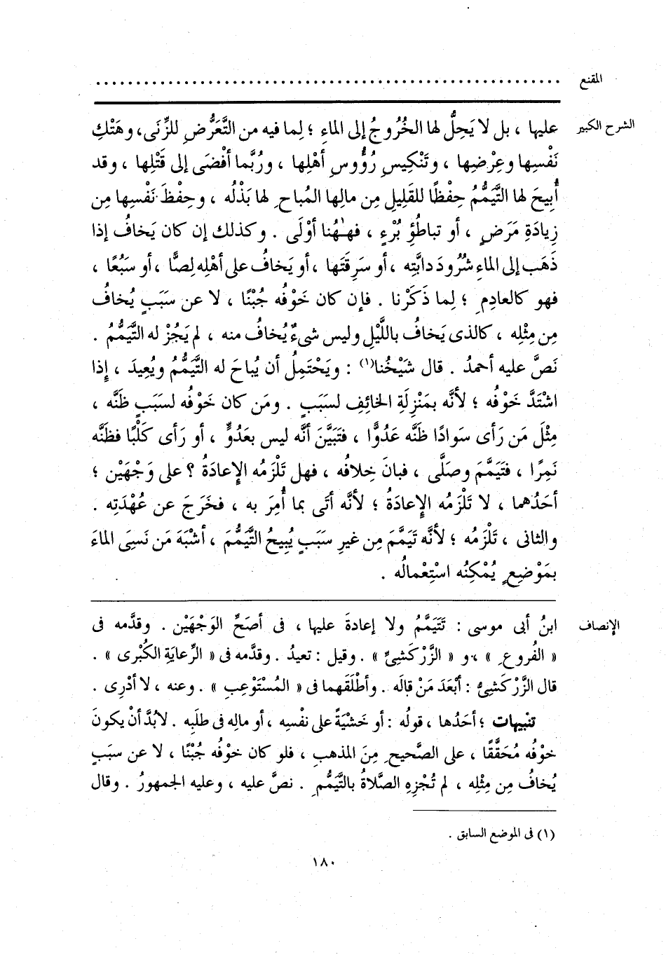 تنْبيهات؛ أحَدُها، قولُه: أو خَشْيَةً على نفْسِه، أو مالِه في طلَبِه. لابُدَّ أنْ يكونَ خوْفُه مُحَقَّقًا، على الصَّحيحِ مِنَ المذهبِ، فلو كان خوْفُه جُبْنًا، لا عن سبَب يُخافُ مِن مِثْلِه، لم تُجْزِهِ الصَّلاةُ بالتَّيَمُّمِ. نصَّ عليه، وعليه الجمهورُ. وقال