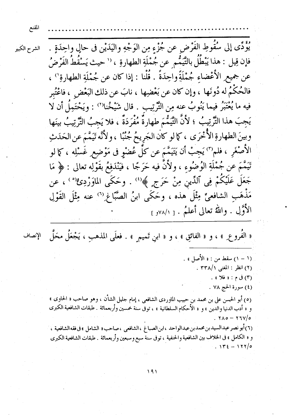 «الفُروعِ»، و «الفائقِ»، و «ابنِ تَميمٍ». فعلَى المذهبِ، يَجْعَلُ محَلَّ