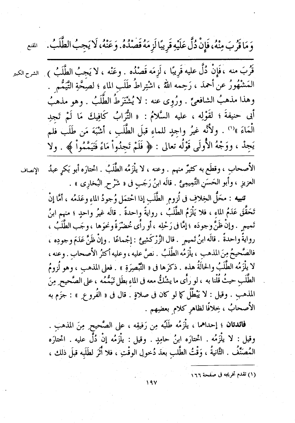 الأصحابِ، وقطعَ به كثير منهم. وعنه، لا يلْزَمُه الطَّلَبُ. اخْتارَه أبو بَكرٍ عبدُ العزيزِ، وأبو الحَسَنِ التَّمِيمِيُّ. قاله ابنُ رَجَب في «شَرْحِ البُخارِي».