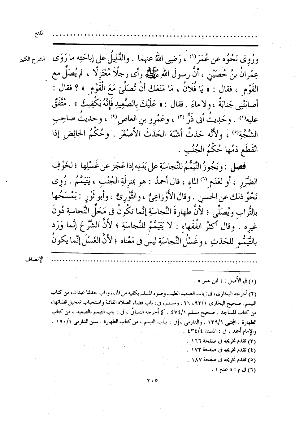 (¬2) أخرجه البخاري، في: باب الصعيد الطيب وضوء المسلم يكفيه من الماء، وباب حدثنا عبدان، من كتاب التيمم. صحيح البخاري 1/ 93، 96. ومسلم، في: باب قضاء الصلاة الفائتة واستحباب تعجيل قضائها، من كتاب المساجد. صحيح مسلم 1/ 474. كما أخرجه النسائيُّ، في: باب التيمم بالصعيد، من كتاب الطهارة. المجتبى 1/ 139. والدارمي، أي: باب التيمم، من كتاب الطهارة. سنن الدارمي 1/ 190. والإمام أحمد، في: المسند 4/ 434.