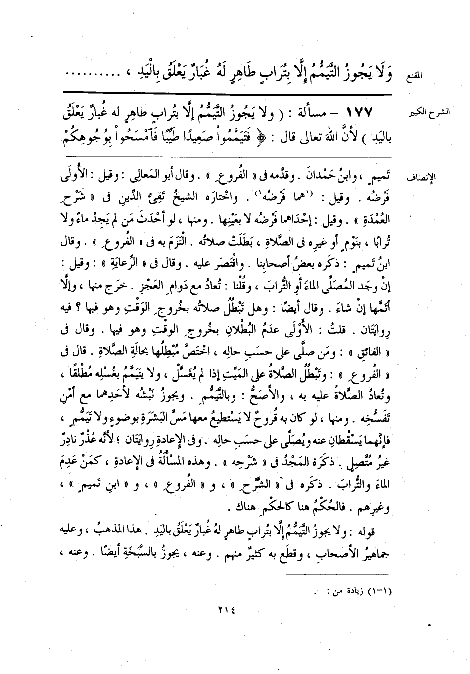 قوله: ولا يجوزُ التَّيَمُّمُ إِلَّا بتُرابٍ طاهرٍ لهُ غُبارٌ يَعْلَقُ باليَدِ هذا المذهبُ، وعليه جماهيرُ الأصحابِ، وقطَع به كثيرٌ منهم. وعنه، يجوز بالسَّبخًةِ أيضًا. وعنه،