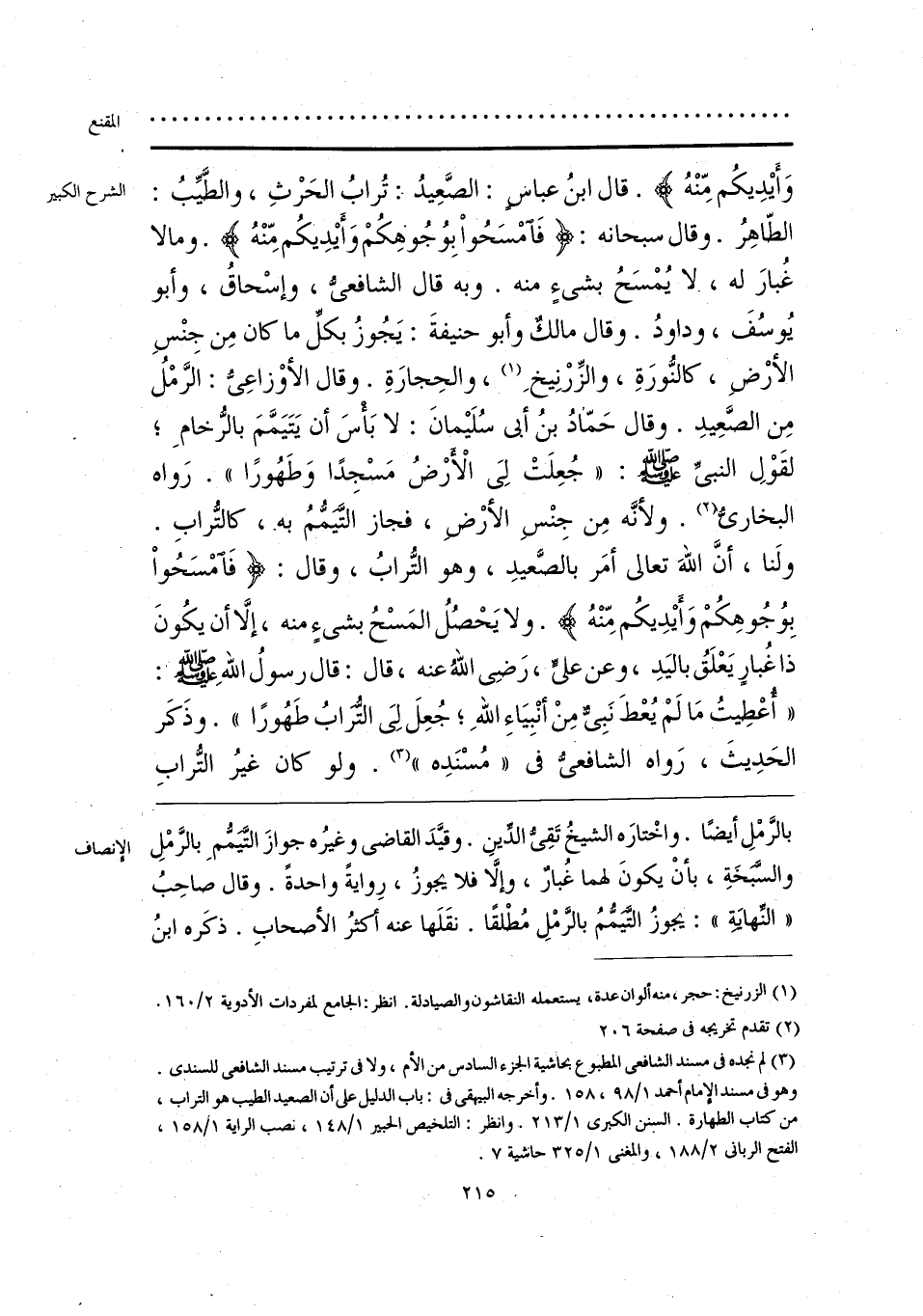 بالرَّمْلِ أيضًا. واخْتارَه الشيخُ تَقِيُّ الدِّينِ. وقيَّدَ القاضي وغيرُه جوازَ التَّيَمُّم بالرَّمْلِ والسَّبَخًةِ، بأنْ يكونَ لهما غُبارٌ، وإلَّا فلا يجوزُ، رِوايةً واحدةً. وقال صاحِبُ «النِّهايَة»: يجوزُ التَّيَمُّمُ بالرَّمْلِ مُطْلقًا. نقَلَها عنه أكثرُ الأصحابِ. ذكَره ابنُ