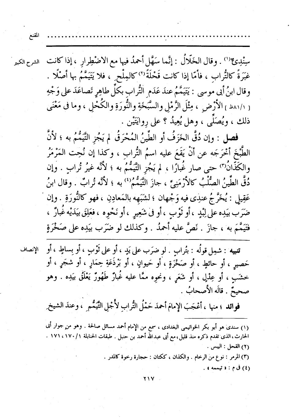 فوائد؛ منها، أعْجَبَ الإمامَ أحمدَ حَمْلُ التُّرابِ لأجْلِ التَّيَمِّمِ، وعندَ الشيخِ
