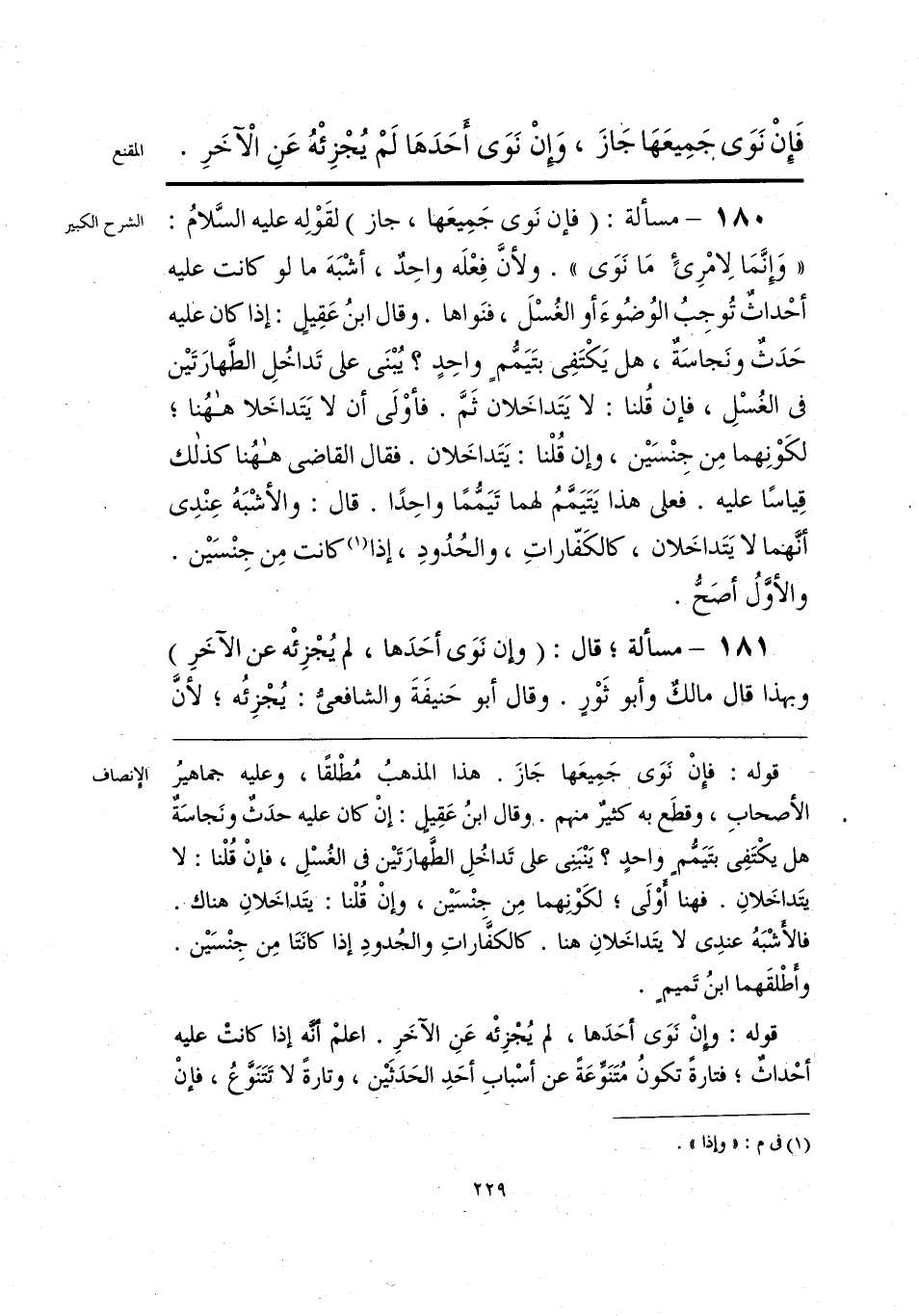 قوله: وإن نَوَى أحَدَها، لم يُجْزِئْه عَنِ الآخَرِ. اعلمْ أنه إذا كانتْ عليه أحْداث؛ فتارةً تكونُ مُتَنَوِّعَةً عن أسْبابِ أحَدِ الحَدَثَين، وتارةً لا تَتَنَوَّعُ، فإنْ