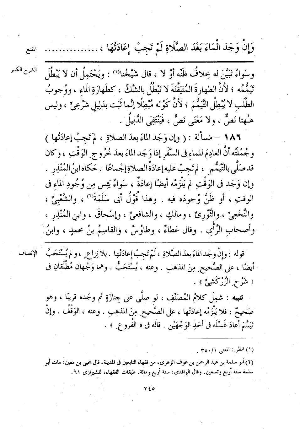 قوله: وإنْ وجَد الماءَ بعدَ الصَّلاةِ، لَمْ تَجِبْ إِعادَتُها. بلا نِزاعٍ، ولم يُسْتَحَبَّ أيضًا، على الصَّحيحِ مِنَ المذهبِ. وعنه، يُسْتَحَبُّ. وهما وَجْهان مُطْلَقانِ في «شَرْحِ الزَّرْكَشِي».