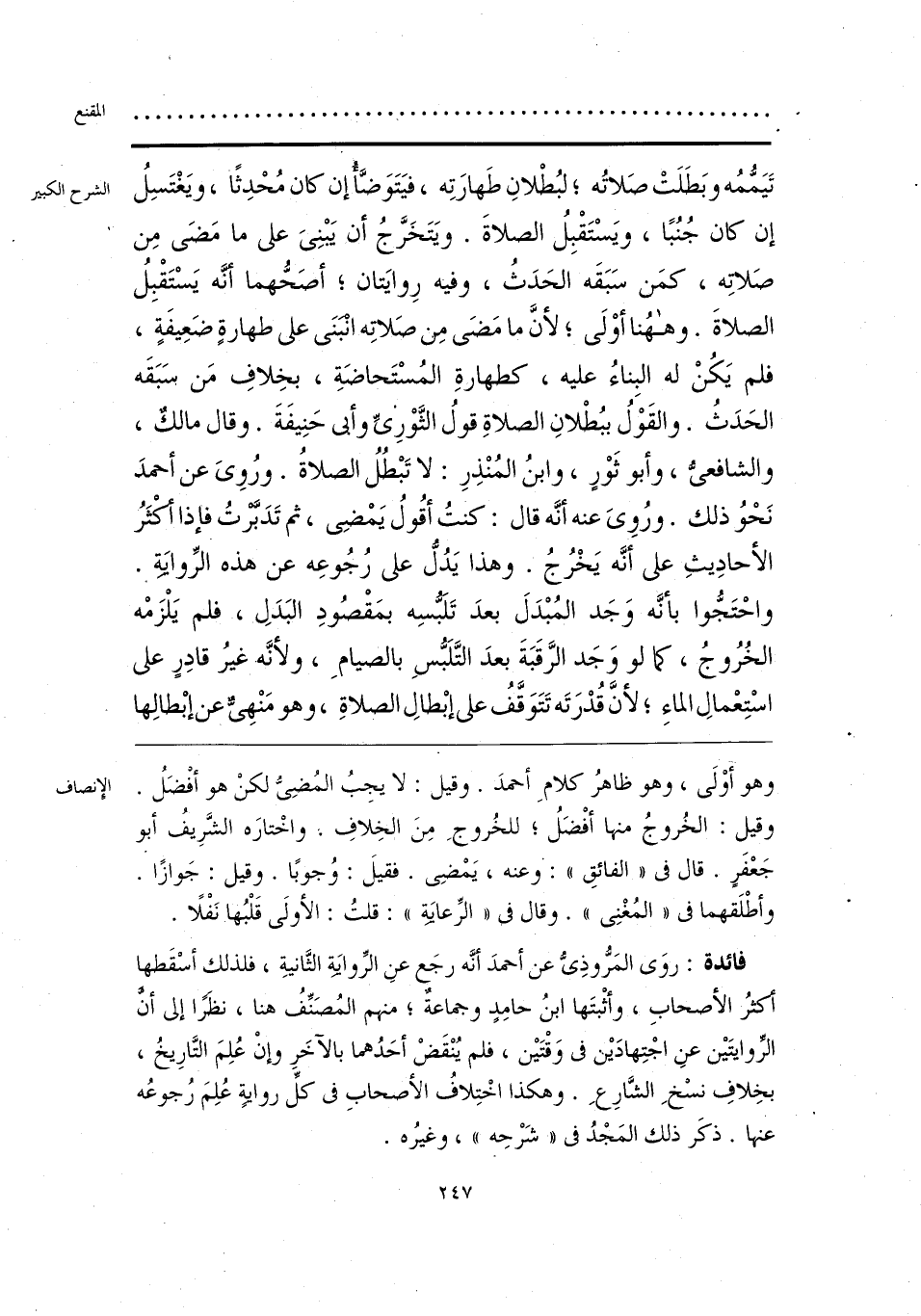وهو أوْلَى، وهو ظاهرُ كلامِ أحمدَ. وقيل: لا يجِبُ المُضِيُّ لكن هو أفضَلُ. وقيلِ: الخُروجُ منها أفْضَلُ؛ للخُروجِ مِنَ الخِلافِ, واخْتارَه الشَّرِيفُ أبو جَعْفرٍ. قال في «الفائقِ»: وعنه، يَمْضِى. فقيلَ: وُجوبًا. وقيل: جَوازًا. وأطْلَقهما في «المُغْنِي». وقال في «الرِّعايَةِ»: قلتُ: الأولَى قَلْبُها نَفْلًا.