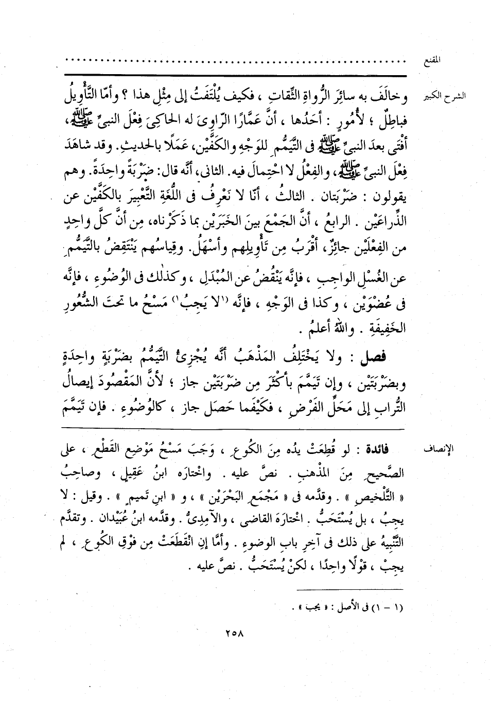 فائدة: لو قُطِعَتْ يدُه مِنَ الكُوعِ، وَجَبَ مَسْحُ مَوْضعِ القَطْعِ، على الصَّحيحِ مِنَ المذْهب. نصَّ عليه. واخْتارَه ابنُ عَقِيلٍ، وصاحِبُ «التَّلْخيصِ». وقدَّمه في «مَجْمَعِ البَحْرَين»، و «ابنِ تَميمٍ». وقيل: لا يجبُ، بل يُسْتَحَبُّ. اخْتارَهَ القاضي، والآمِدِيُّ. وقدَّمه ابنُ عُبَيدان. وتقدَّم التَّنْبِيهُ على ذلك في آخِرِ بابِ الوضوءِ. وأمَّا إنِ انْقَطَعَتْ مِن فوْقِ الكُوعِ، لم يجِبْ، قوْلًا واحِدًا، لكنْ يُسْتَحَبُّ. نصَّ عليه.