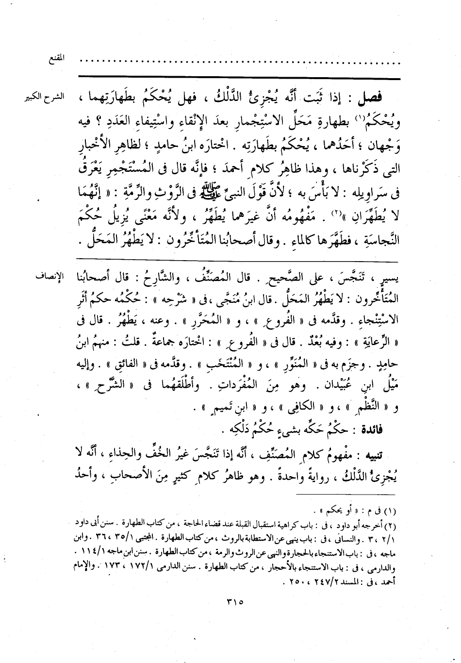 يسيرٍ، تَنَجَّسَ، على الصَّحيحِ. قال المُصَنِّفُ، والشَّارِحُ: قال أصحابُنا المُتَأخِّرون: لا يَطْهُرُ المَحَلُّ. قال ابنُ مُنَجَّى، في «شَرْحِه»: حُكْمُه حكمُ أثَرِ الاسْتِنْجاءِ. وقدَّمه في «الفُروعِ»، و «المُحَرَّرِ». وعنه، يَطْهُرُ. قال في «الرِّعايَةِ»: وفيه بُعْدٌ. قال في «الفُروعِ»: اخْتارَه جماعةٌ. قلتُ: منهمُ ابنُ حامِدٍ. وجزَم به في «المُنَوِّرِ»، و «المُنْتَخَبِ». وقدَّمه في «الفائقِ». وإليه مَيلُ ابنِ عُبَيدان. وهو مِنَ المُفْرَداتِ. وأطْلَقهُما في «الشَّرْحِ»، و «النَّظْمِ»، و «الكافِي»، و «ابنِ تَميمٍ».