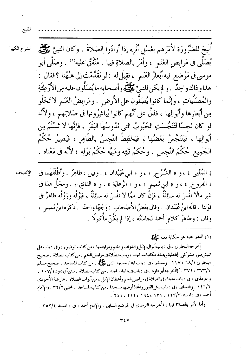 «المُغْنِي»، و «الشَّرْحِ»، و «ابنِ عُبَيدان». وقيل: طاهِرٌ. وأطْلَقَهما في «الفُروعِ»، و «ابنِ تَميم»، و «الرِّعايَةِ»، و «الفائقِ». ومحَلُّ هذا في غيرِ ما لا نفْسَ له سائِلَةٌ، فإن كان ممَّا لا نفْسَ له سائِلَةٌ، فبَوْلُه ورَوْثُه طاهرٌ في قَوْلنا. قاله ابنُ عُبَيدان. وقال بعْضُ الأصْحابِ: وَجْهًا واحدًا. ذكرَه ابنُ تَميم، وقال: وظاهرُ كلامِ أحمدَ نَجاسَتُه، إذا لم يكُنْ مأكولًا.