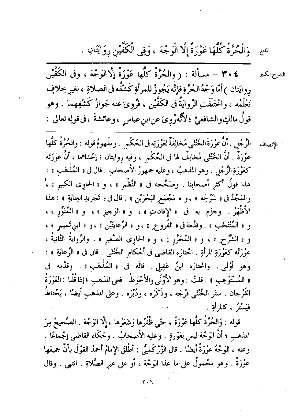 الرَّجُلِ. أنَّ عوْرةَ الخنْثَى مخالِفَة لعَورته فى الحكْمِ. ومفْهوم قولِه: والحُرَّة كلُّها عوْرَة. أن الخنثَى مخالِف لها فى الحُكْمِ، وفيه رِوايتان؛ إحداهما، أنَّ عوْرته كغوْرَه الرجُل. وهو المذهب، وعليه جمهورُ الأصحابِ. قال فى «المُذهب»: هذا قول أكثرِ أصحابِنا. وصححه فى «النَّظْمِ»، و «الحاوِى الكبير» والمجْدُ فى «شرحِه»، و «مَجمع البحرَيْن». قال فى «تجْريدِ العِنايَة»: هذا الأظْهر. وجزم به فى «الإفادات»، و «الوَجيز»، و «المُنَوِّرِ»، و «المنْتَخَب». وقدمة فى «الفُروعِ»، و «الرِّعايتَيْن»، و «ابنِ تميمٍ»، و «الشرح»، و «المُحَرَّرِ»، و «الحاوِى الصغيرِ». والرِّوايةُ الثانيةُ، عوْرَتُه كعَوْرةِ المرأةِ. اخْتارَه القاضى فى أحكامِ الخنْثَى. قال فى «الرعايةِ»: وهو أوْلَى. واخْتارَه ابنُ عقِيل. قالَه فى «المُذْهبِ». وقدَّمه فى «المسُتَوْعِبِ». قلتُ: وهو الأولَى والأحوَط. فعلى المذهب؛ إذا قُلْنا: العَوْرَة الفَرجان. ستَر الخنْثَى فرْجَه، وذَكَره، ودُبُره. وكل المذهبِ أيضًا، يَحتاط فيَسْتر، كالمرأةِ.