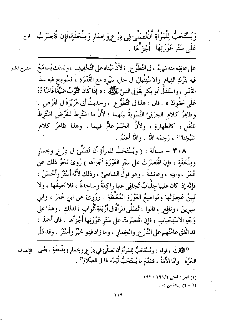 [الثَّالثُ، قوله: ويُسْتَحَبُّ لِلمَرأةِ أن تُصَلِّيَ فيِ دِرْعٍ وخِمارٍ ومِلْحَفَةٍ. يعْنى الحُرَّةَ. وأما الأمَةُ، فتقدَّمَ ما يُستحَبُّ لُبْسُه لها في الصَّلاةِ] (¬1).