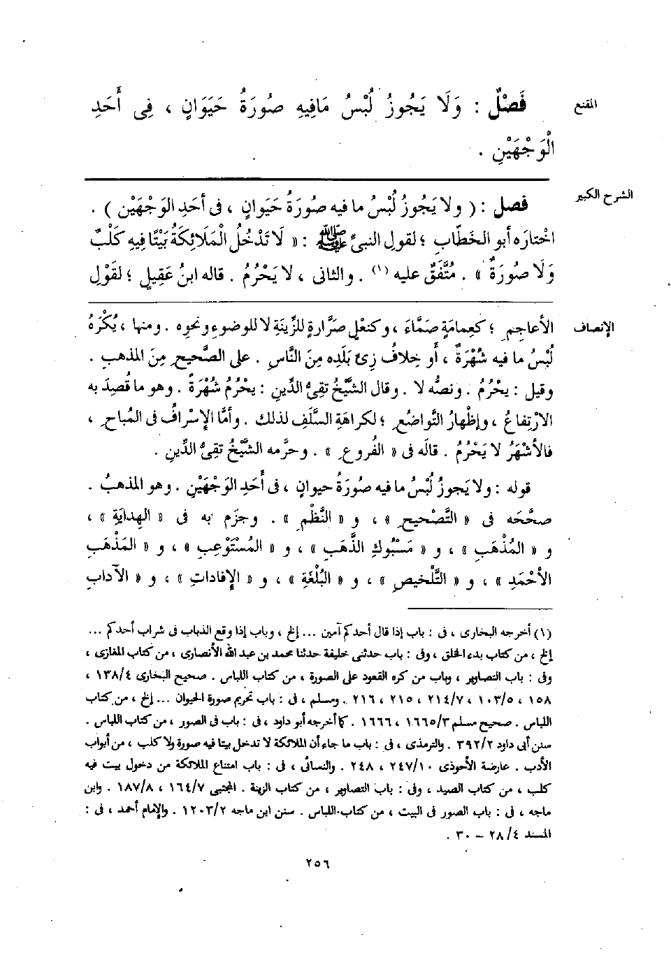 فَصْلٌ: وَلَا يَجُوزُ لُبْسُ مَا فِيهِ صُورَةُ حيَوَانٍ، فِي أحدِ الْوَجْهَيْنِ.
