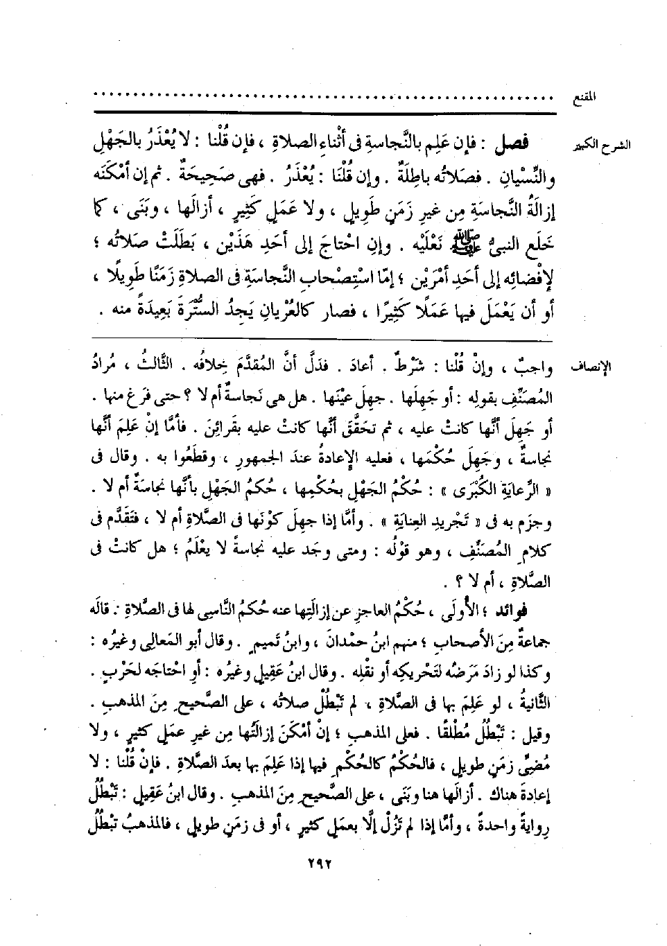 واجبٌ، وإنْ قلْنا: شَرْط. أعادَ. فدل أن المُقدَّمَ خِلافُه. الثَّالث، مُرادُ المصَنفِ بقولِه: أو جَهِلَها. جهِلَ عينها. هل هي نَجاسة أم لا؛ حتَّى فرَغ منها. أو جَهل أنها كانتْ عليه، ثم تحَقَّقَ أنها كانتْ عليه بقَرائنَ. فأمَّا إن عَلِمَ أنها نجاسة، وجَهِلَ حكْمَها، فعليه الإعادة عندَ الجمهورِ، وقطَعوا به. وقال في «الرِّعايَةِ الكُبْرَى»: حُكْمُ الجَهْلِ بحكمها، حُكمُ الجَهْلِ بأنها نجاسَة أم لا. وجزَم به في «تَجْريدِ العِنايَةِ». وأمَّا إذا جهِلَ كوْنَها في الصلاةِ أم لا، فتَقدّم في كلامِ المُصَنّفِ، وهو قوْلُه: ومتى وجَد عليه نجاسة لا يعْلَم؛ هل كانتْ في الصلاةِ، أم لا؟.