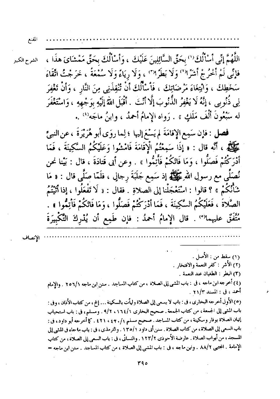 (¬4) أخرجه ابن ماجه، في: باب المشي إلى الصلاة، من كتاب المساجد. سنن ابن ماجه 1/ 256. والإمام أَحْمد، في: المسند 3/ 21.