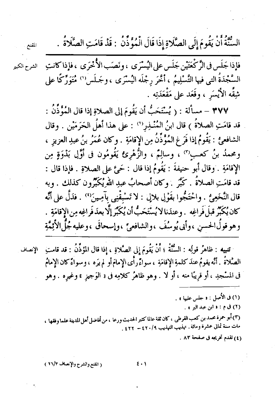 تنبيه: ظاهرُ قوله: السُّنَّةُ، أنْ يَقومَ إلى الصَّلاةِ، إذا قال المؤذِّنُ: قد قامتَ الصَّلاةُ. أنَّه يقومُ عندَ كلمةِ الإقامَةِ، سواءً رأى الإمامَ أو لم يَره، وسواءً كان الإمامُ في المسْجدِ، أو قرِيبًا منه، أولا. وهو ظاهرُ كلامِه في «الوَجيزِ» وغيرِه. وهو
