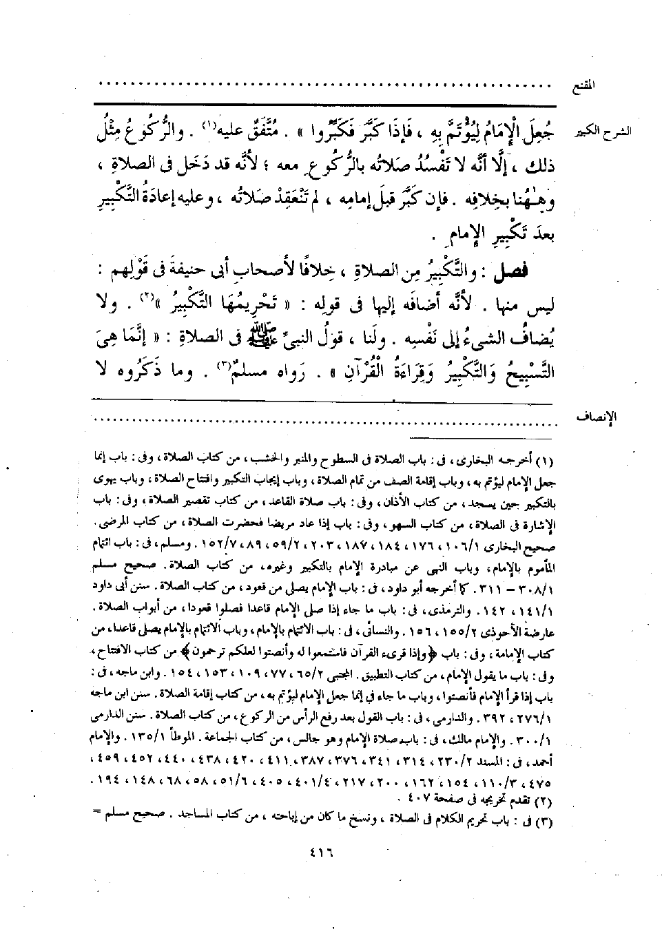 فصل: والتَّكْبيرُ مِن الصلاةِ، خِلافًا لأصحابِ أبي حنيفةَ في قوْلِهم: ليس منها. لأنَّه أَضافَه إِليها في قولِه: «تحْرِيمُهَا التَّكْبِيرُ» (¬2). ولا يُضافُ الشيءُ إلى نَفْسِه. ولَنا، قولُ النبيِّ -صَلَّى الله عَلَيْهِ وَسَلَّم- في الصلاةِ: «إنَّمَا هِيَ التَّسْبِيحُ وَالتَّكبِيرُ وَقِرَاءَةُ الْقُرْآنِ». رَواه مسلمٌ (¬3). وما ذَكَرُوه لا