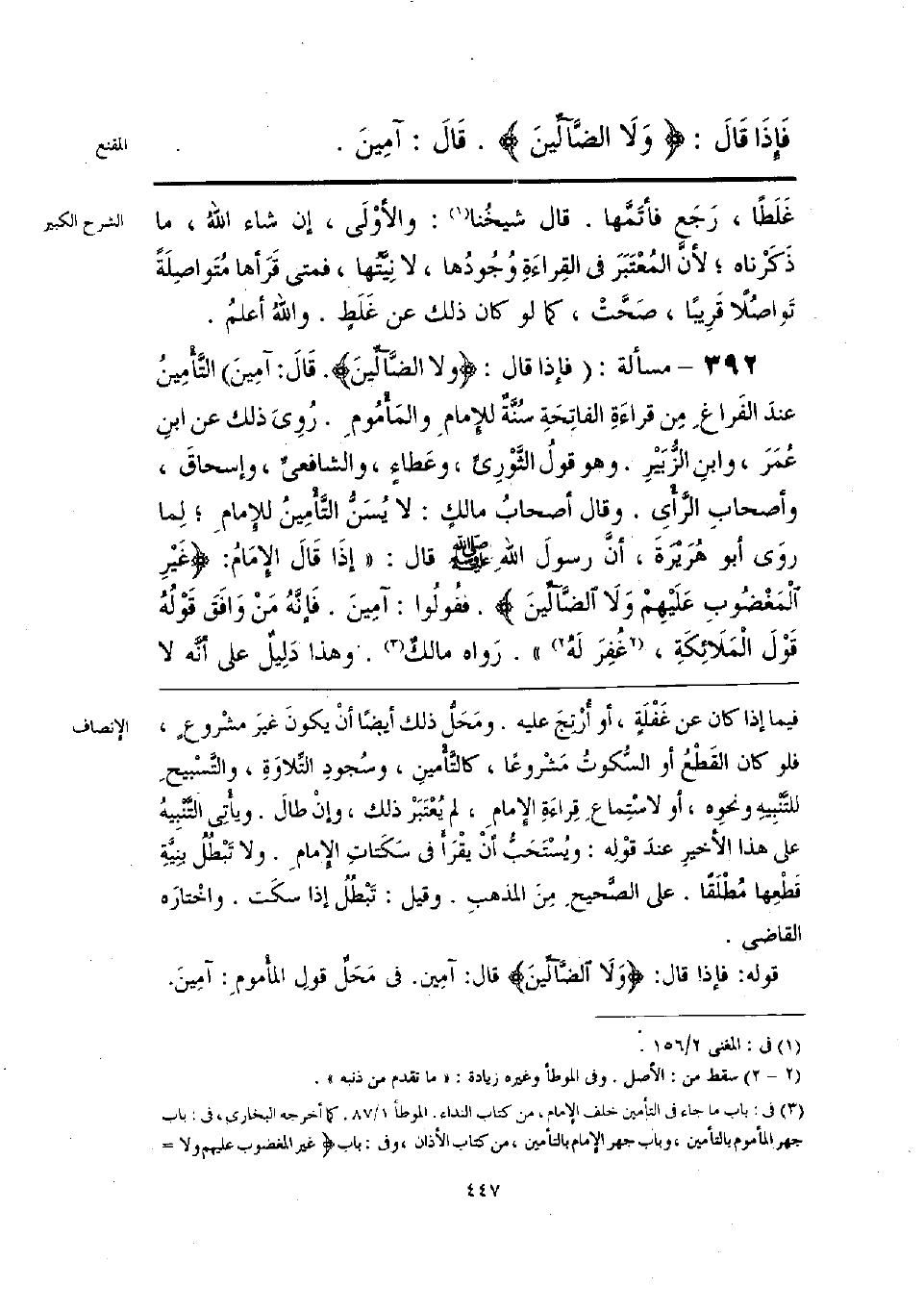 قوله: فإذا قال: {وَلَا الضَّالِّينَ} قال: آمِين. في مَحَلُّ قولِ المأْمومِ: آمِينَ.