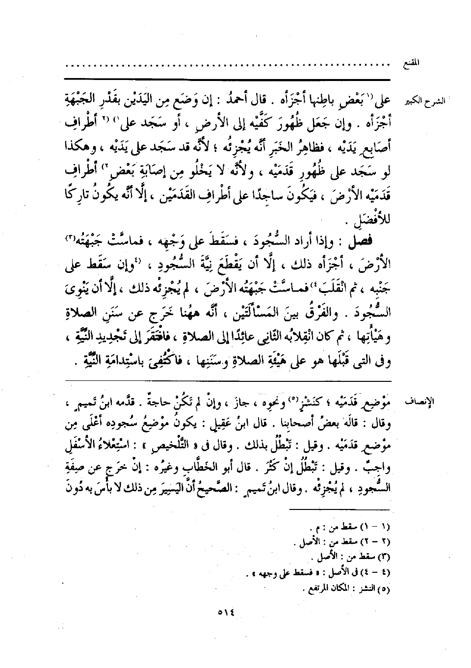 موْضِع قَدميْه؛ كنشْزٍ (¬1) ونحوِه، جازَ، وإنْ لم تَكنْ حاجة. قدَّمه ابنُ تَميمٍ، وقال: قالَه بعضُ أصحابِنا. قال ابنُ عَقِيل: يكون موْضِعُ سُجودِه أعْلَى مِن موْضع قدمَيْه. وقيل: تبطُلُ بذلك. وقال في «التلْخيص»: اسْتِعْلاء الأسْفَلِ واجبٌ. وقيل: تبطُل إنْ كَثُرَ. قال أبو الخطابِ وغيرُه: إنْ خرَج عن صِفَةِ السُّجودِ، لم يُجْزِئْه. وقال ابنُ تميم: الصَّحيحُ أن اليسِيرَ من ذلك لا بأسَ به دُونَ
