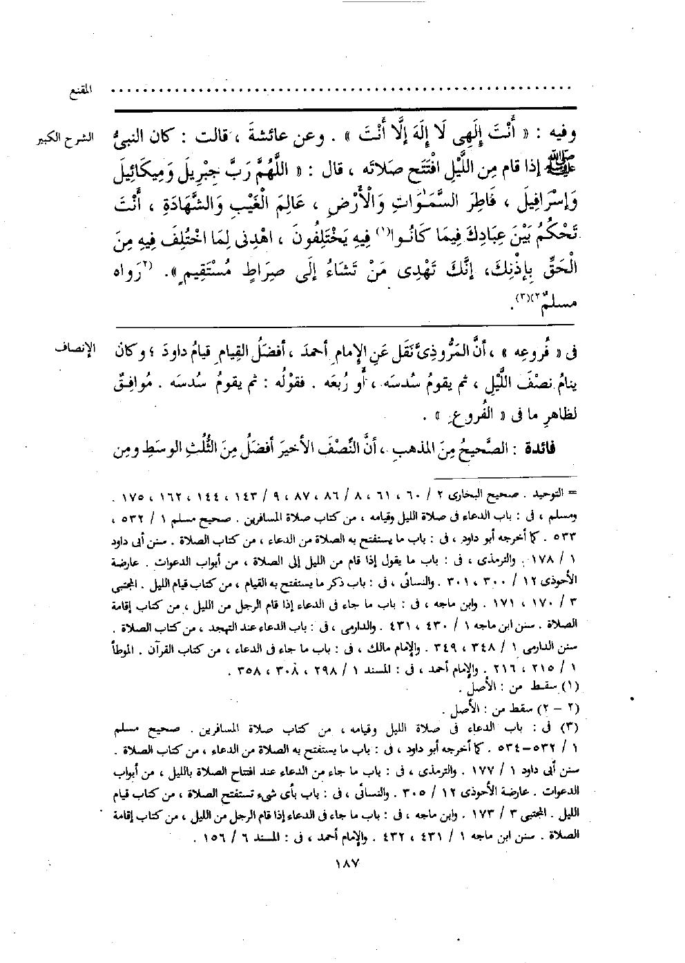 في «فُروعِه»، أنَّ المرُّوذِي نقَل عَنِ الإِمام أَحْمد، أفضلُ القِيامِ قيام داودَ؛ وكان ينامُ نصْفَ الليْل، ثم يقوم سدسَه، أو رُبعَه. فقوله: ثم يقومُ سدسَه. موافِقٌ لظاهرِ ما في «الفُروعَ».