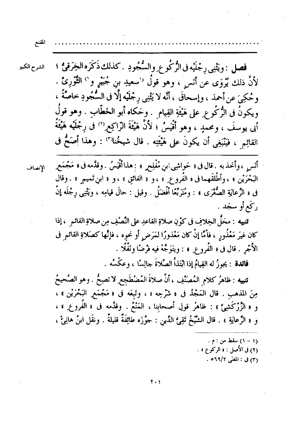أنسٍ، وأخَذ به. قال في «حَواشى ابن مُفْلِحٍ» هذا أقْيَسُ. وقدَّمه في «مَجْمَع البَحْرَيْن»، وأطْلقَهما في «الفُروع»، و «الفائقِ»، و «ابن تَميم». وقال في «الرعايةِ الصغْرَى»: ومُتَرَبعًا أفْضَلُ. وقيل: حال قيامِه، ويَثْنِي رِجْلَه إنْ ركَع أو سجَد.