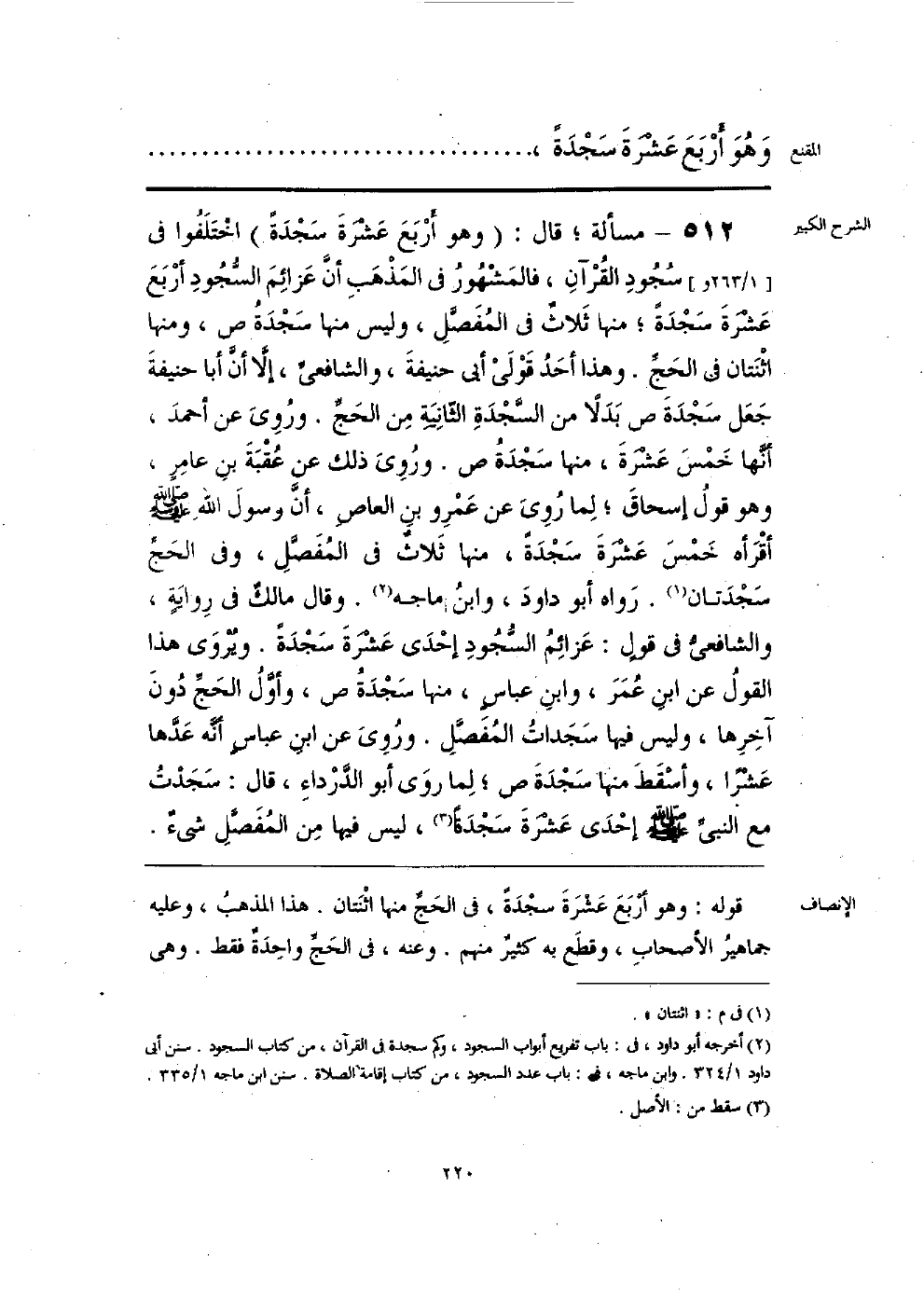 قوله: وهو أربَعَ عَشرَةَ سجْدَةً، في الحجِّ منها اثْنَتان. هذا المذهبُ، وعليه جماهير الأصحابِ، وقطَع به كثير منهم. وعنه، في الحَجِّ واحدة فقط. وهي