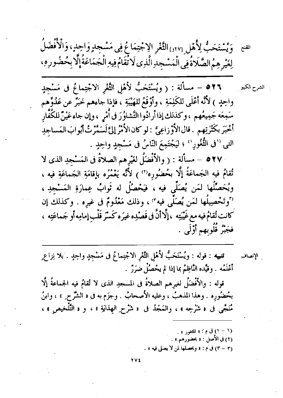 تنبيه: قوله: ويُسْتَحبُّ لأهْلِ الثغرِ الاجْتِماعُ في مسجد واحدٍ. بلا نِزاعٍ أعلمُه. وقيده الناظمُ بما إذا لم يحصُلْ ضرَر.