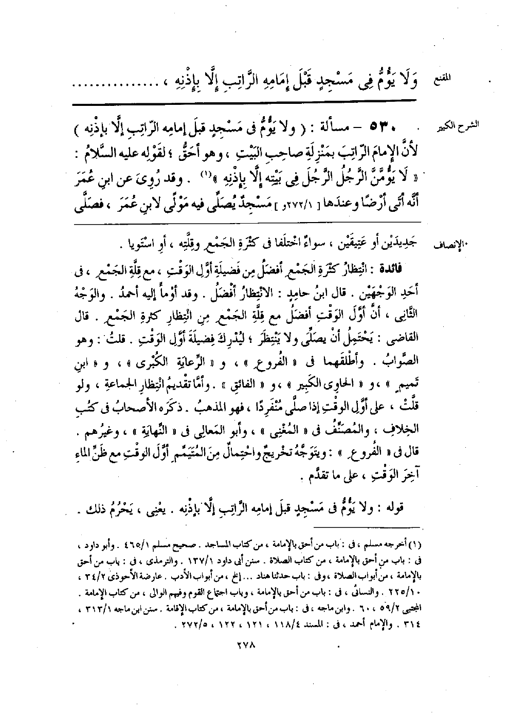 قوله: ولا يَؤم في مَسْجِدٍ قبلَ إمامِه الراتِب إلا بإذْنه. يعني، يحرم ذلك.