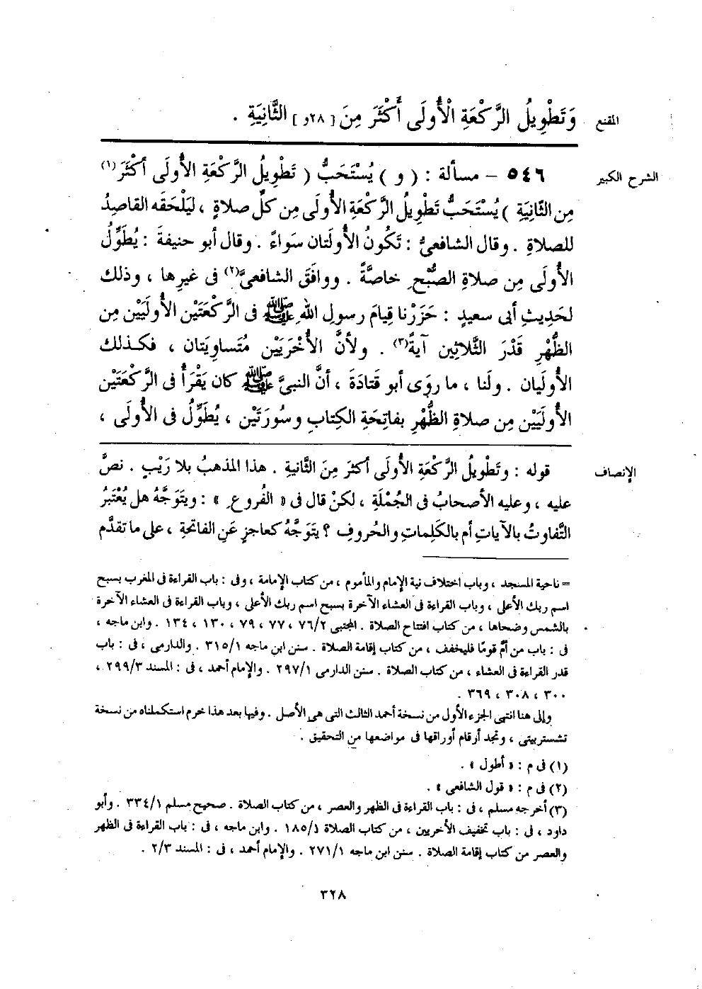 قوله: وتَطْويلُ الرَّكْعَةِ الأُولَى أكثرَ مِنَ الثَّانيةِ. هذا المذهبُ بلا رَيْبٍ. نصّ عليه، وعليه الأصحابُ في الجُمْلَةِ، لكنْ قال في «الفُروعِ»: ويتَوَجَّهُ هل يُعْتَبرُ التَّفاوتُ بالآياتِ أم بالكَلِماتِ والحُروفِ؛ يتَوَجَّهُ كعاجزٍ عَنِ الفاتحةِ، على ما تقدَّم