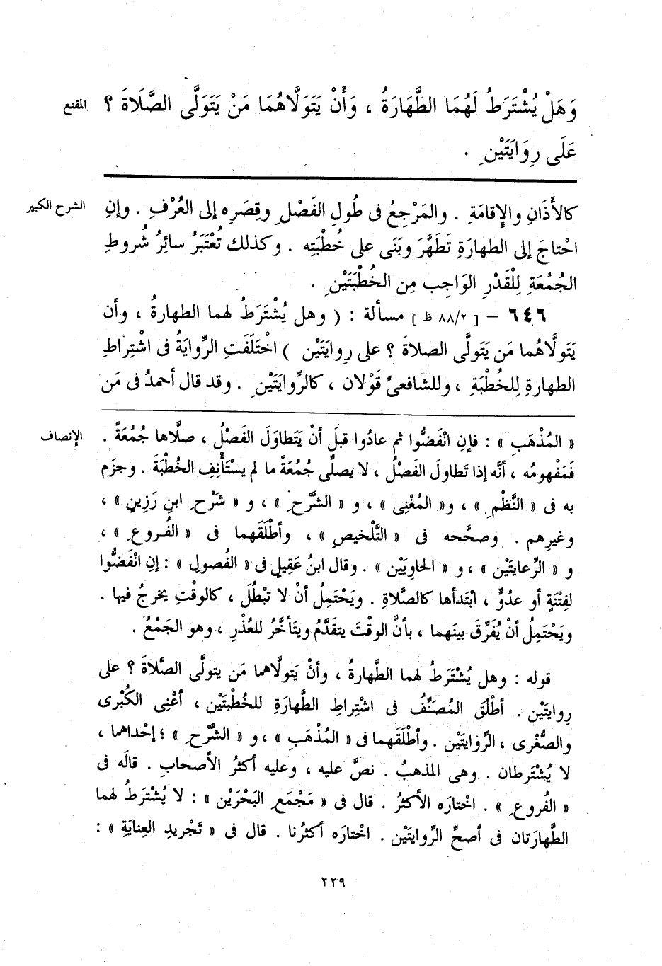 قوله: وهل يُشْتَرَطُ لهما الطَّهارةُ، وأن يَتَولَّاها مَن يتولَّى الصَّلاةَ؟ على رِوايتَيْن. أطْلقَ المُصَنِّفُ فى اشْتِراطِ الطَّهارَةِ للخُطْبَتَيْن، أعْنِى الكُبْرى والصُّغْرى، الرِّوايتَيْن. وأطْلَقَهما فى «المُذْهَبِ»، و «الشَّرْحِ»؛ إحْداهما، لا يُشْتَرطان. وهي المذهبُ. نصَّ عليه، وعليه أكثرُ الأصحابِ. قالَه فى «الفُروعِ». اخْتارَه الأكثرُ. قال فى «مَجْمعِ البَحْرَيْن»: لا يُشْترَطُ لهما الطَّهارَتان فى أصحِّ الرِّوايتَيْن. اخْتارَه أكثرُنا. قال فى «تَجْريدِ العِنايَةِ»:
