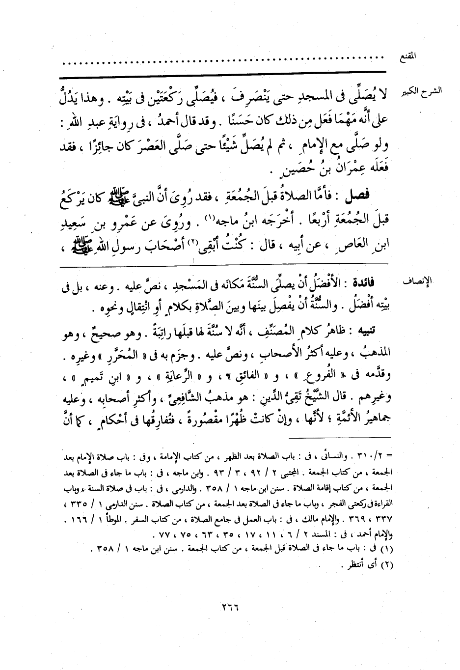 فائدة: الأفْضَلُ أنْ يصلِّىَ السُّنَّةَ مَكانَه فى المَسْجدِ، نصَّ عليه. وعنه، بل فى بيْتِه أفْضَلُ. والسُّنَّةُ أنْ يفْصِلَ بينَها وبينَ الصَّلاةِ بكلامٍ أوِ انْتِقالٍ ونحوِه.