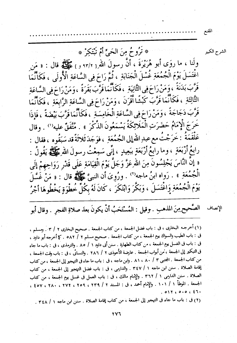 الصَّحيحِ مِنَ المذهبِ. وقيل: المُسْتَحَبُ أنْ يكونَ بعدَ صلاةِ الفجرِ. وقال أبو