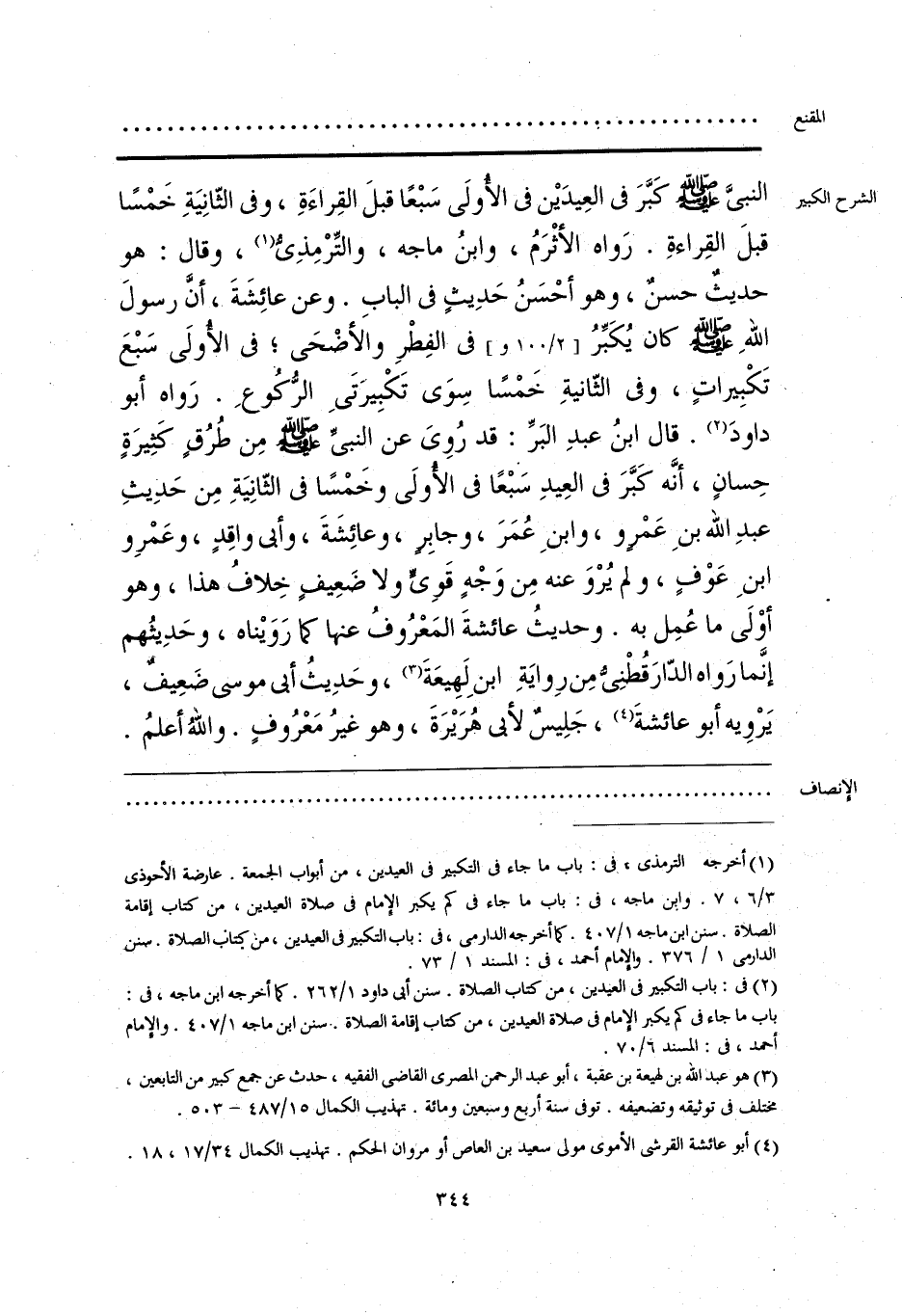 (¬1) أخرجه الترمذى، في: باب ما جاء في التكبير في العيدين، من أبواب الجمعة. عارضة الأحوذى 3/ 6، 7. واين ماجه، في: باب ما جاء في كم يكبر الإمام في صلاة العيدين، من كتاب إقامة الصلاة. سنن ابن ماجه 1/ 407. كما أخرجه الدارمى، في: باب التكبير في العيدين، من كتاب الصلاة. سنن الدارمى 1/ 376. والإمام أحمد، في: المسند 1/ 73.