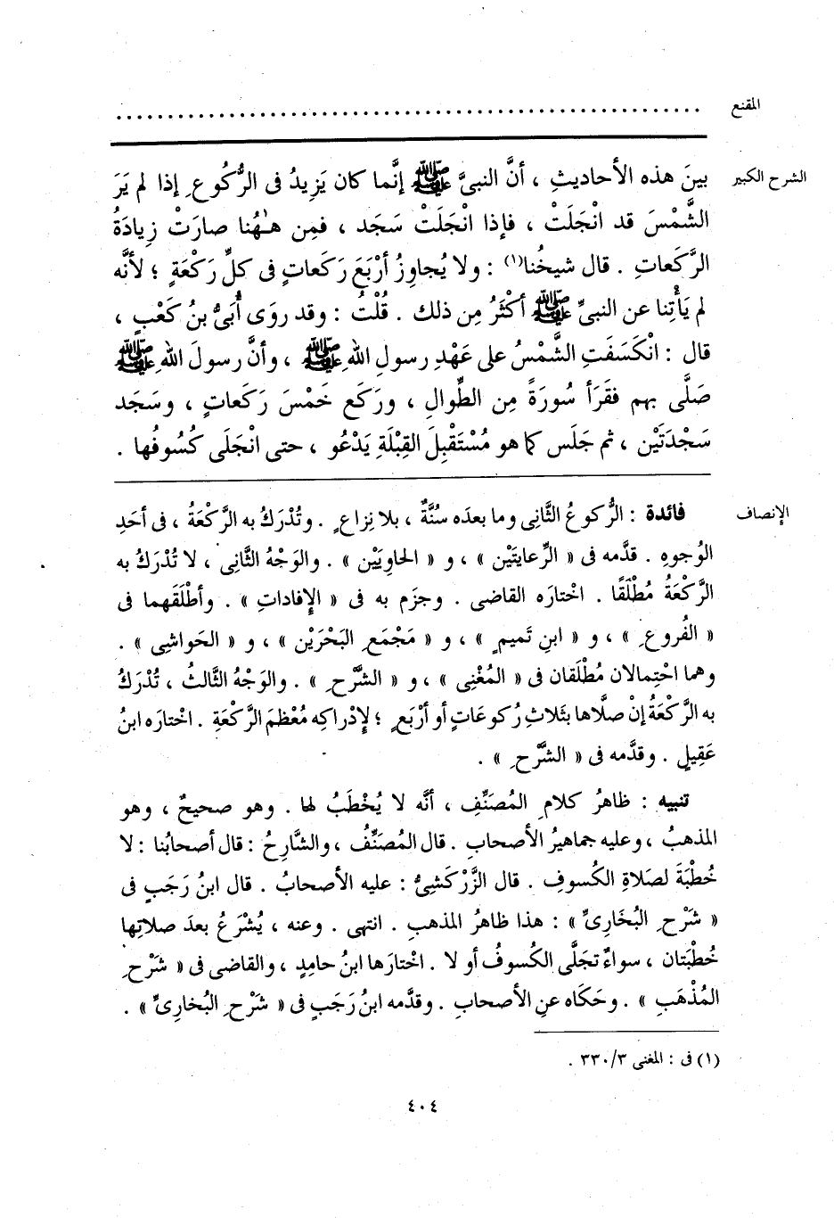 فائدة: الرُّكوعُ الثَّانِى وما بعدَه سُنَّةٌ، بلا نِزاعٍ. وتُدْرَكُ به الرَّكْعَةُ، فى أحَدِ الوُجوهِ. قدَّمه فى «الرِّعايتَيْن»، و «الحاوِيَيْن». والوَجْهُ الثَّانِى، لا تُدْرَكُ به الرَّكْعَةُ مُطْلَقًا. اخْتارَه القاضى. وجزَم به فى «الإِفاداتِ». وأطْلَقَهما فى «الفُروعِ»، و «ابنِ تَميمٍ»، و «مَجْمَعِ البَحْرَيْن»، و «الحَواشِى». وهما احْتِمالان مُطْلَقان فى «المُغْنِى»، و «الشَّرْحِ». والوَجْهُ الثَّالثُ، تُدْرَكُ به الرَّكْعَةُ إنْ صلَّاها بثَلاثِ رُكوعَاتٍ أو أرْبَعٍ؛ لإدْراكِه مُعْظمَ الرَّكْعَةِ. اخْتارَه ابنُ عَقِيلٍ. وقدَّمه فى «الشَّرْحِ».