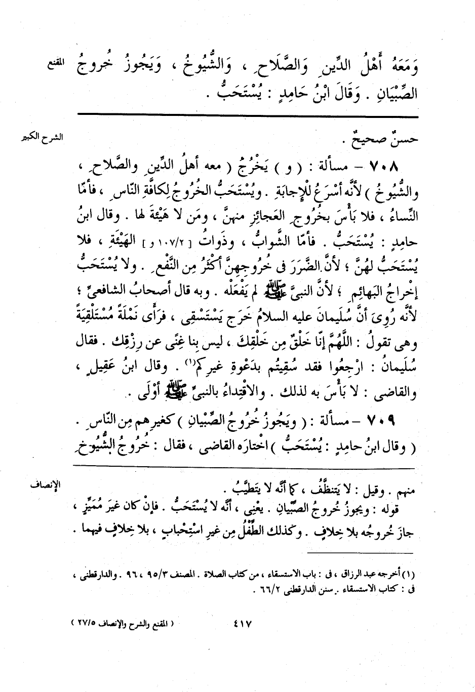 وَمَعَهُ أَهْلُ الدِّينَ وَالصَّلَاحِ، وَالشُّيُوخُ، وَيَجُوزُ خُروجُ الصِّبْيَانِ. وَقَالَ ابْنُ حَامِدٍ: يُسْتَحَبُّ.