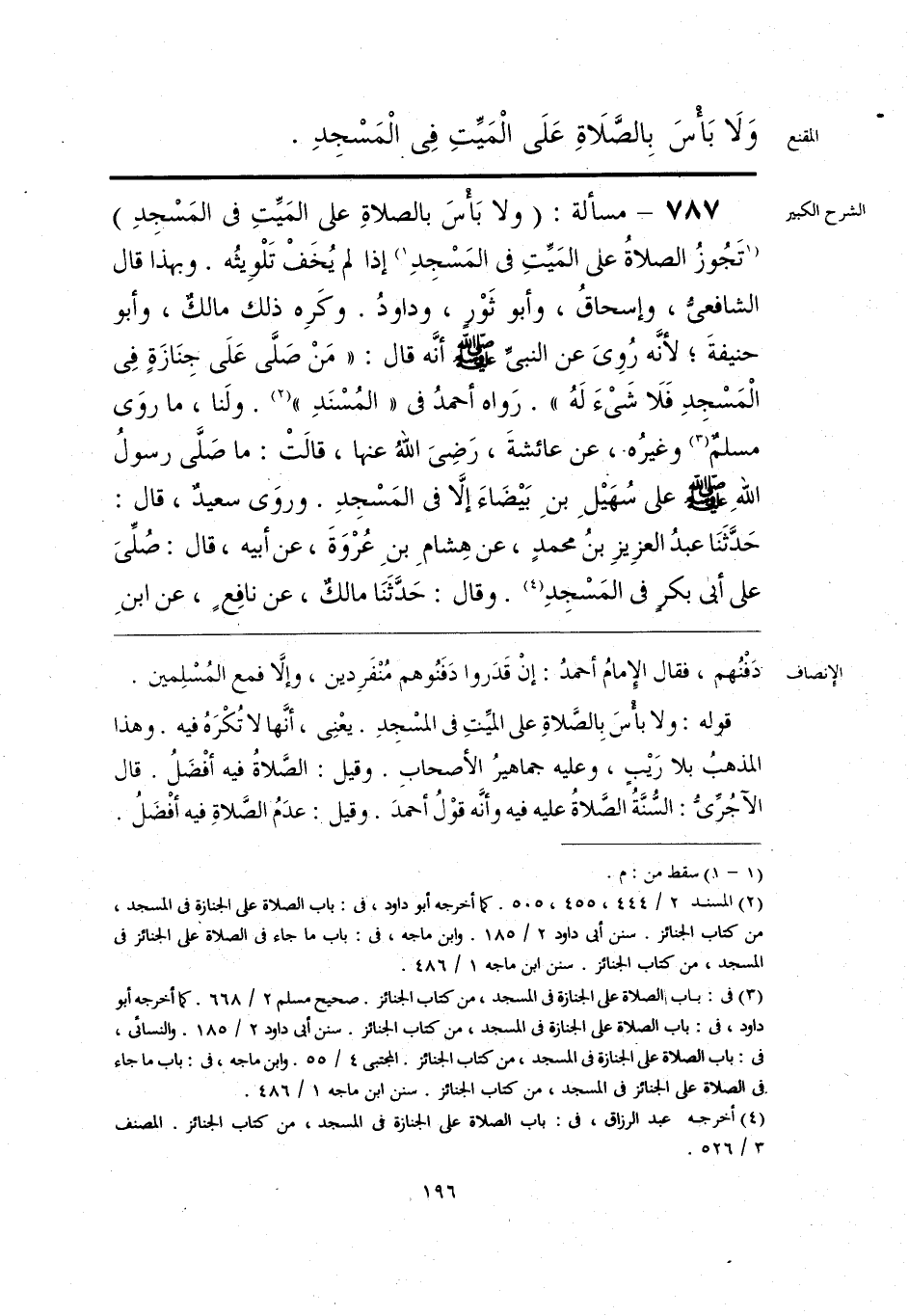 وَلَا بَأْسَ بِالصَّلَاةِ عَلَى الْمَيِّتِ فِى الْمَسْجِدِ.