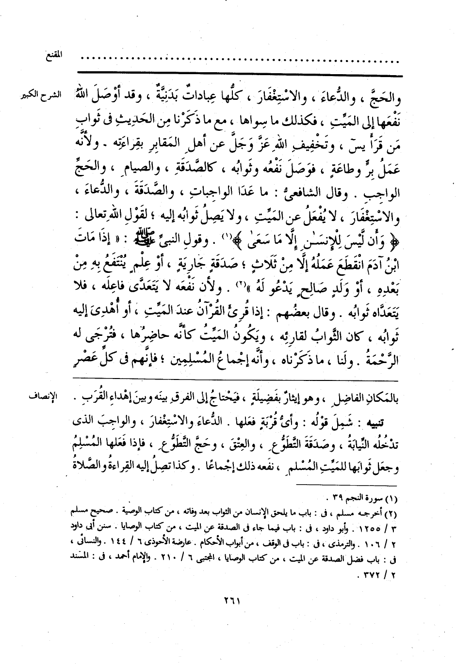 تنبيه: شَمِلَ قوْلُه: وأىُّ قُرْبَةٍ فعَلها. الدُّعاءَ والاسْتِغْفارَ، والواجِبَ الذى تدْخُلُه النِّيابَةُ، وصَدَقَةَ التَّطَوُّعِ، والعِتْقَ، وحَجَّ التَّطَوُّعِ، فإذا فَعَلها المُسْلِمُ وجعَل ثَوابَها للمَيِّتِ المُسْلمِ، نفَعه ذلك إجْماعًا. وكذا تصِلُ إليه القِراءةُ والصَّلاةُ