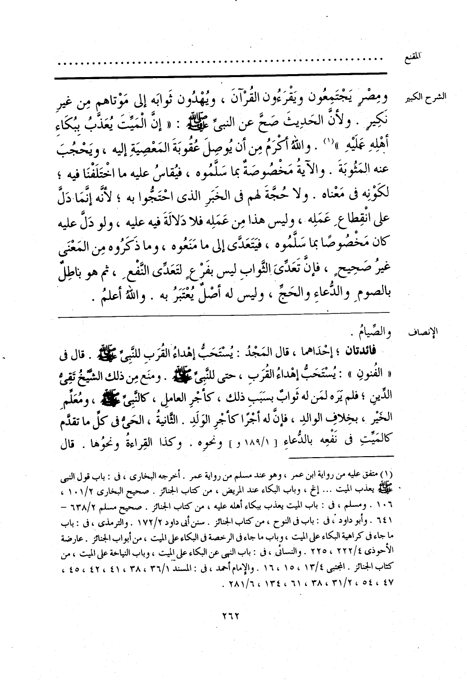 فائدتان؛ إحْدَاهما، قال المَجْدُ: يُسْتَحَبُّ إهْداءُ القُرَبِ للنَّبِىِّ - صلى الله عليه وسلم -. قال فى «الفُنونِ»: يُسْتَحَبُّ إهْداءُ القُرَبِ، حتى للنَّبِىِّ - صلى الله عليه وسلم -. ومنَع مِن ذلك الشَّيْخُ تَقِىُّ الدِّينِ؛ فلم يَرَه لمَن له ثَوابٌ بسَبَبِ ذلك، كأجْرِ العاملِ، كالنَّبِىِّ - صلى الله عليه وسلم -، ومُعَلَّمِ الخَيْر، بخِلافِ الوالدِ، فإنَّ له أجْرًا كأجْرِ الوَلَدِ. الثَّانيةُ، الحَىُّ فى كلِّ ما تقدَّم