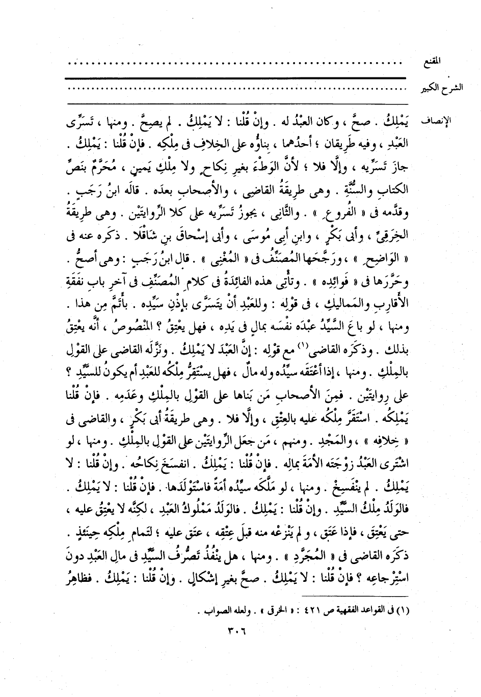 وحَرَّرَها فى «فَوائِدِه». وتأْتِى هذه الفائِدَةُ فى كلامِ المُصَنِّفِ فى آخرِ بابِ نفَقَةِ الأقارِبِ والمَماليكِ، فى قوْلِه: وللعَبْدِ أنْ يتَسَرَّى بإذْنِ سَيِّدِه. بأَتَمَّ مِن هذا.