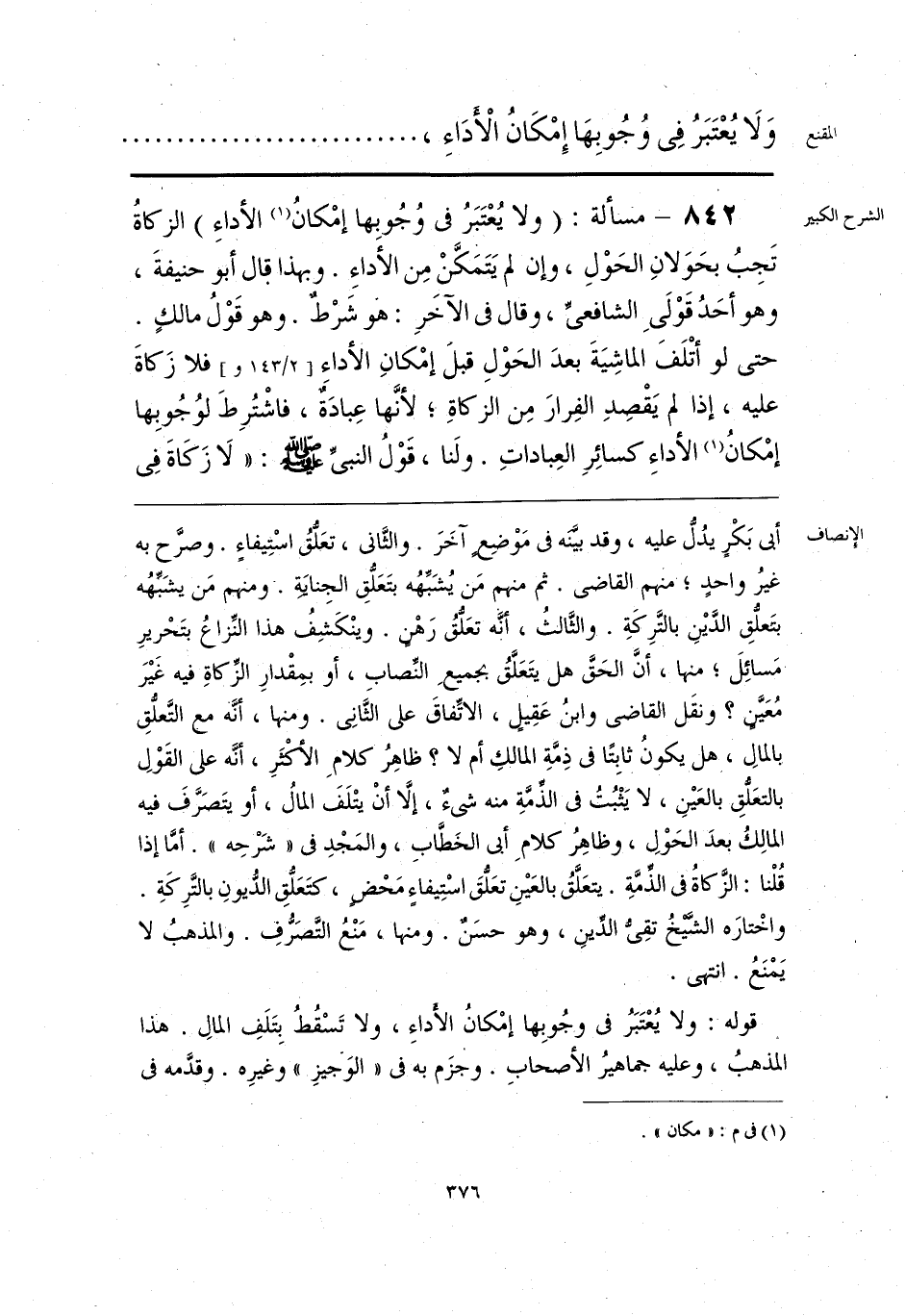 قوله: ولا يُعْتَبَرُ فى وجُوبِها إمْكانُ الأَداءِ، ولا تَسْقُطُ بِتَلَفِ المالِ. هذا المذهبُ، وعليه جماهيرُ الأصحابِ. وجزَم به فى «الوَجيزِ» وغيرِه. وقدَّمه فى