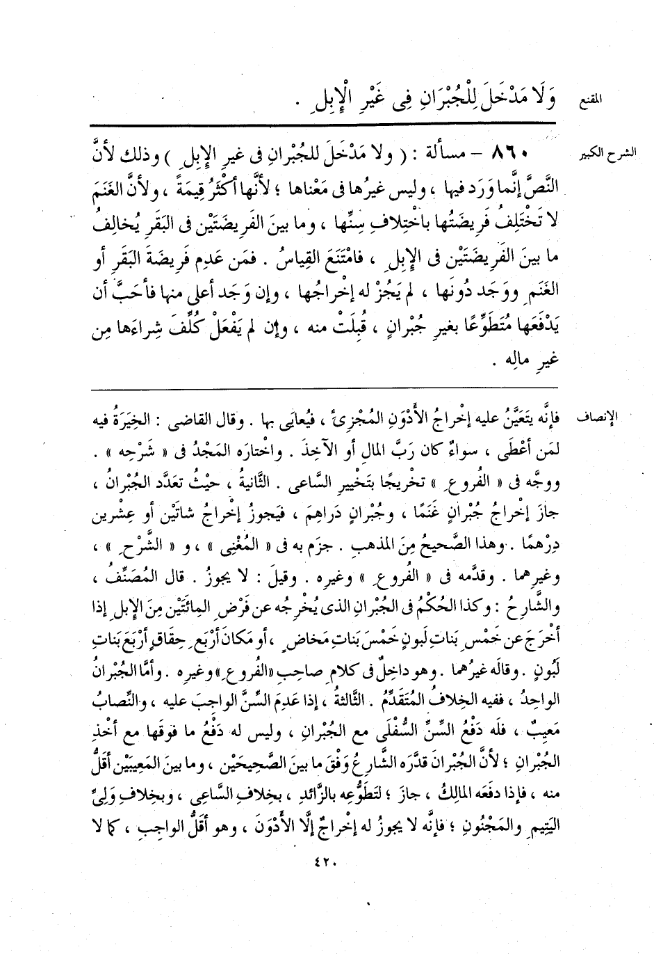 وَلَا مَدْخَلَ لِلْجُبْرَانِ فِى غَيْرِ الإِبِلِ.